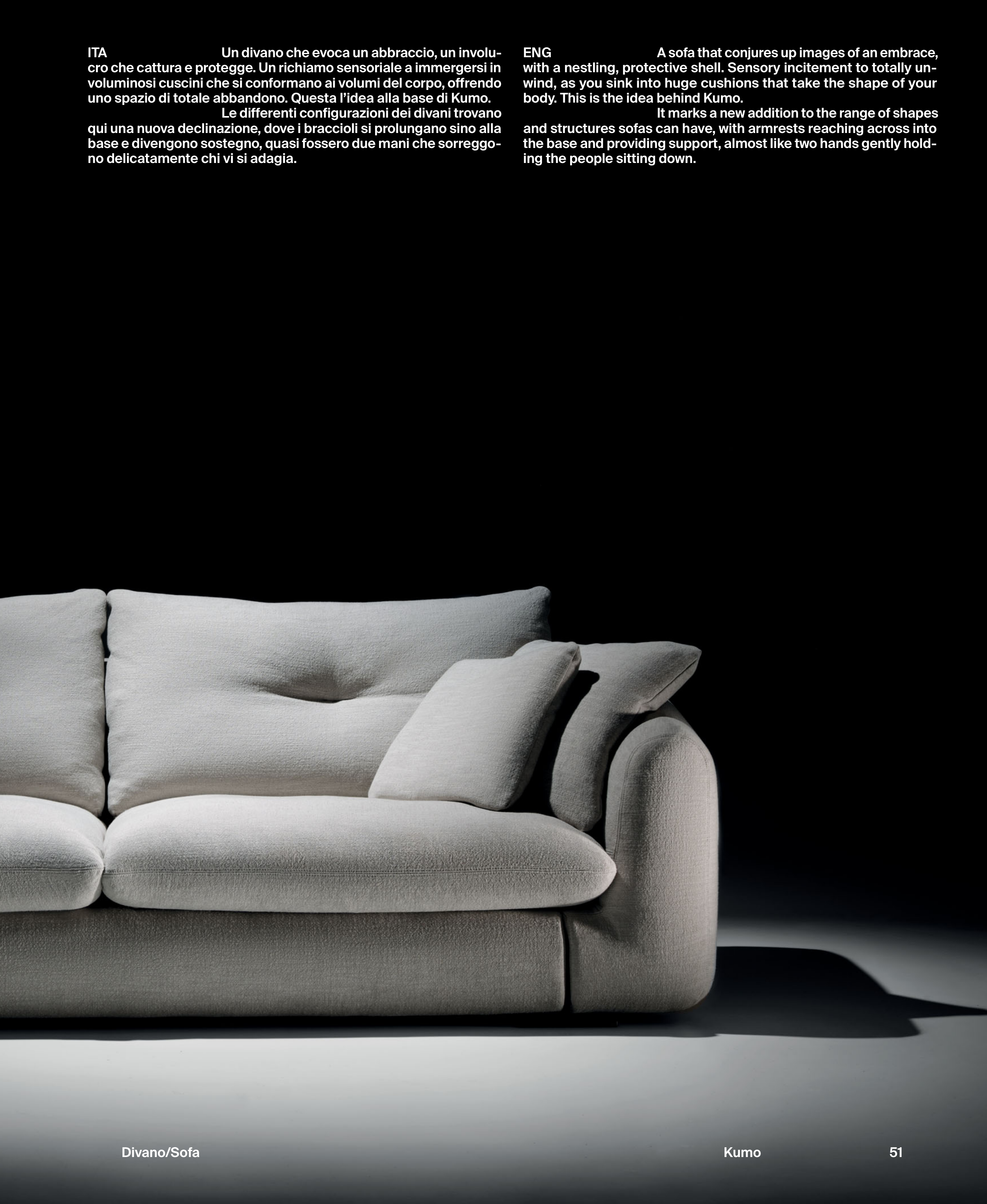 voluminosi cuscini che si conformano ai volumi del corpo, offrendo