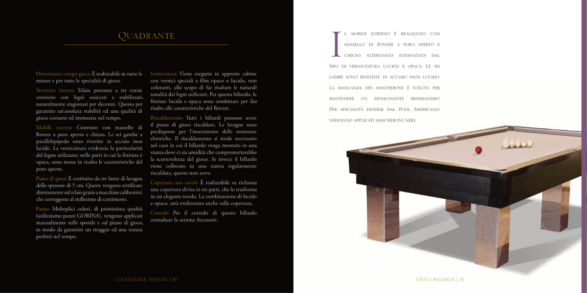 tonalità dei legni utilizzati. Per questo biliardo, le
