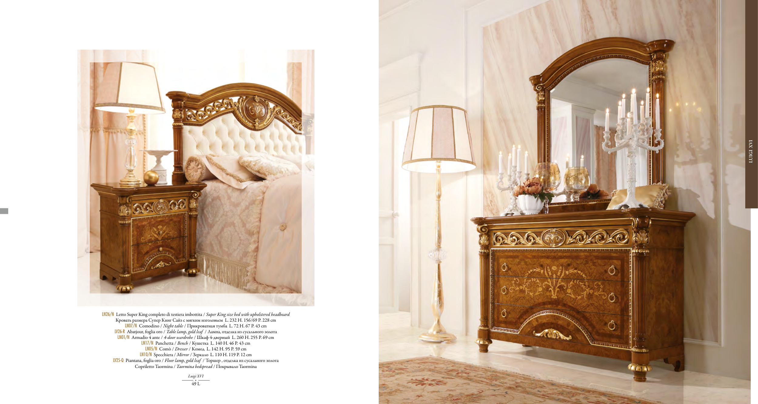 LN26/N Letto Super King completo di testiera imbottita / Super King size bed with upholstered headboard