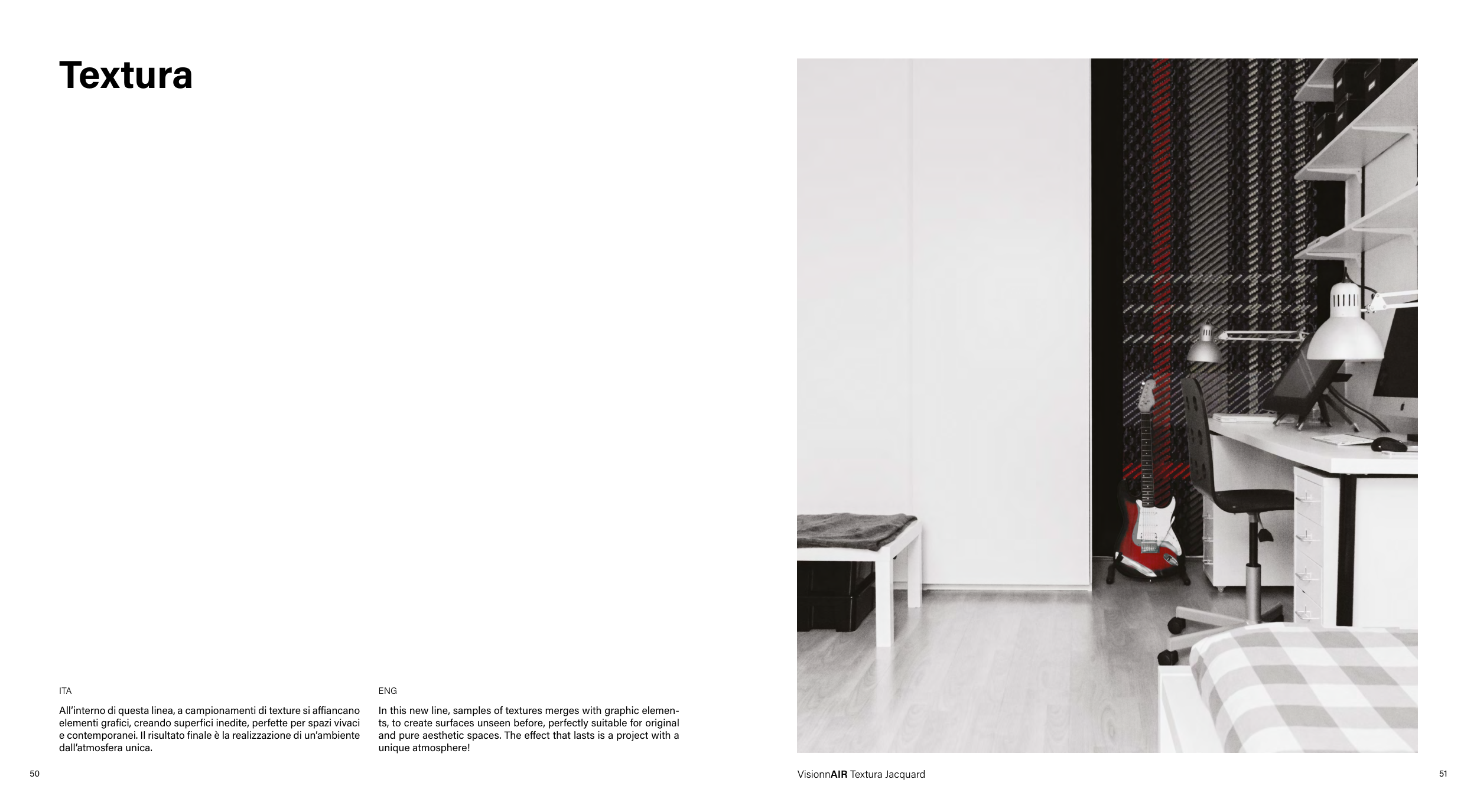 In this new line, samples of textures merges with graphic elemen-