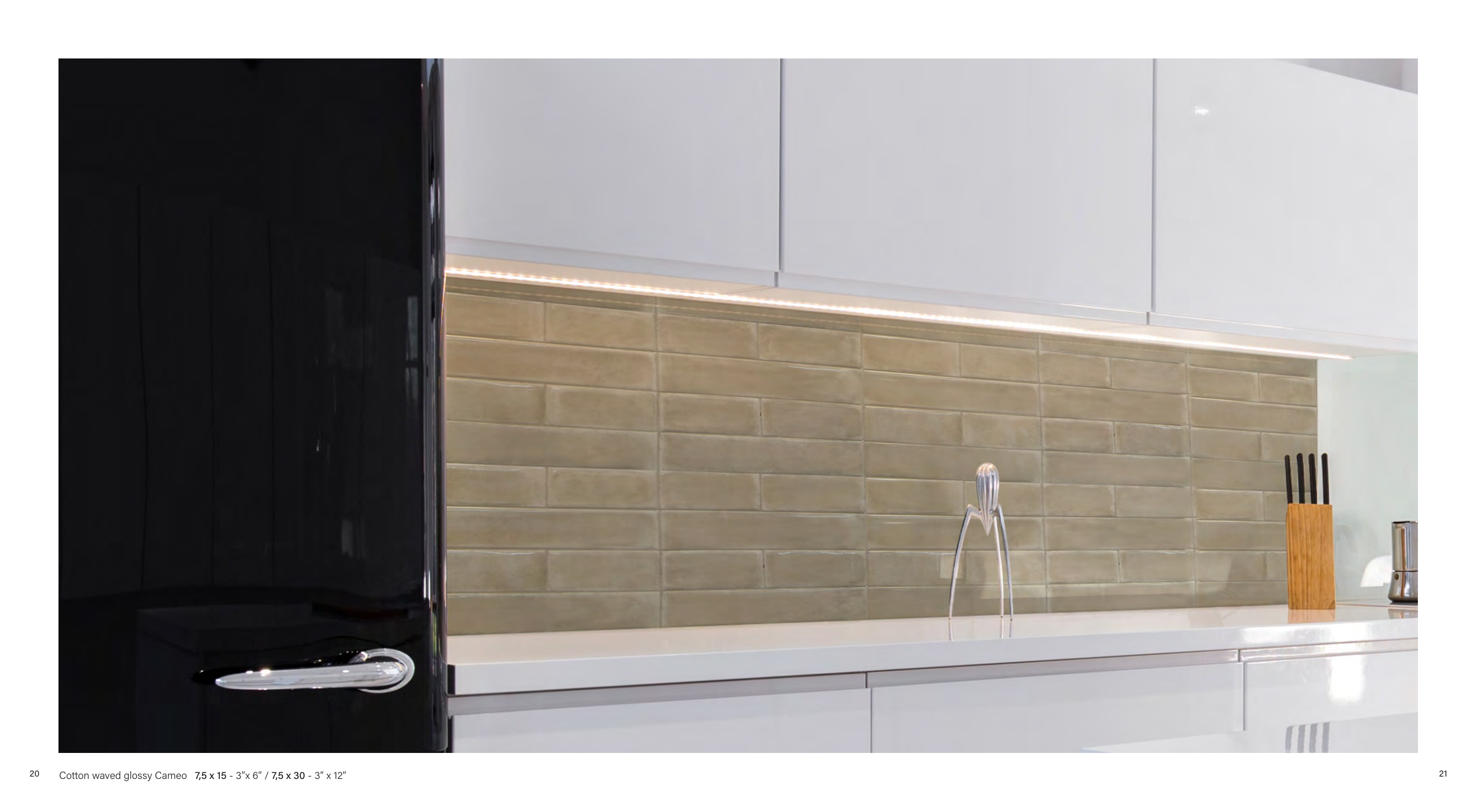 Cotton waved glossy Cameo 7,5 x 15 - 3”x 6” / 7,5 x 30 - 3” x 12”
