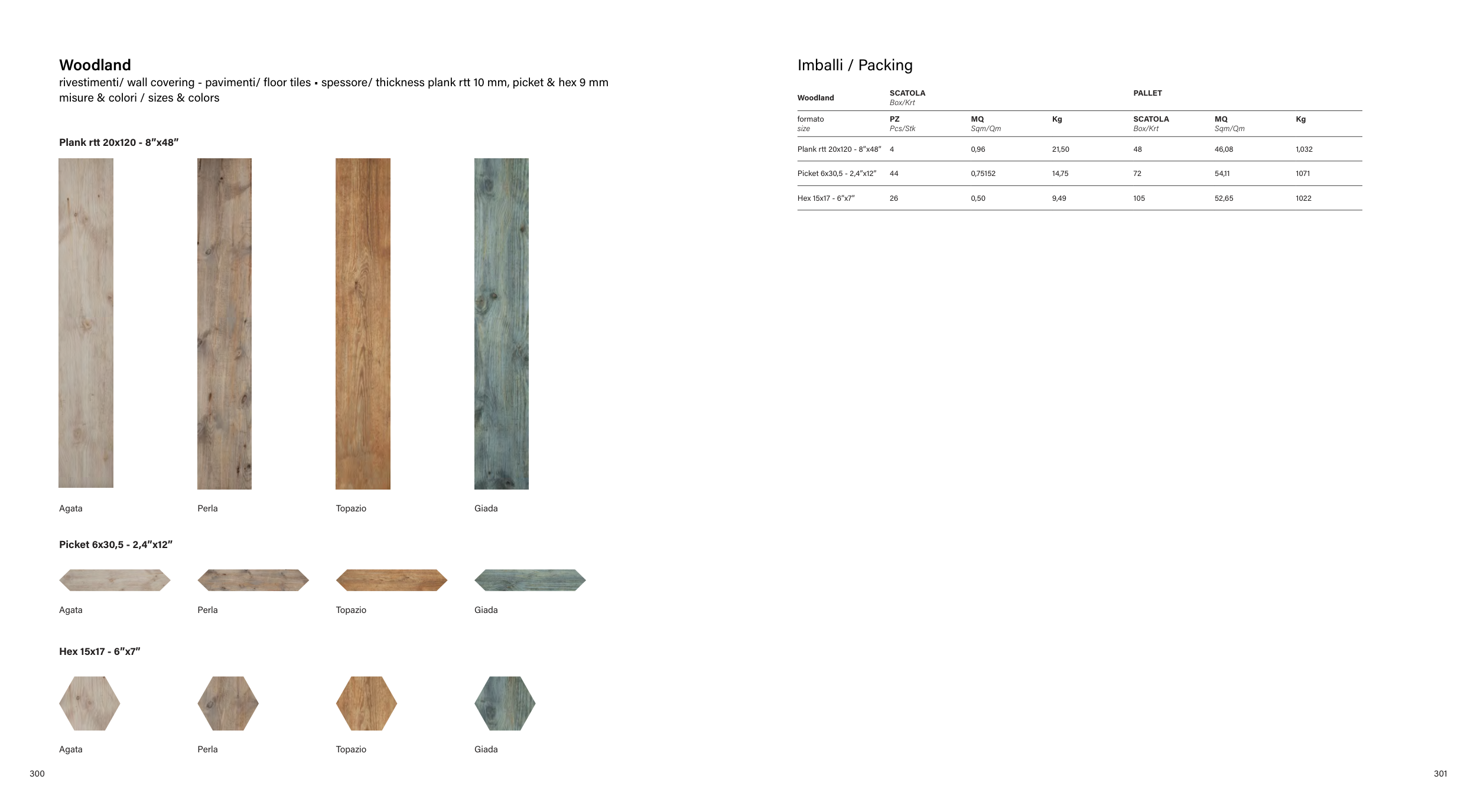 rivestimenti/ wall covering - pavimenti/ floor tiles • spessore/ thickness plank rtt 10 mm, picket & hex 9 mm
