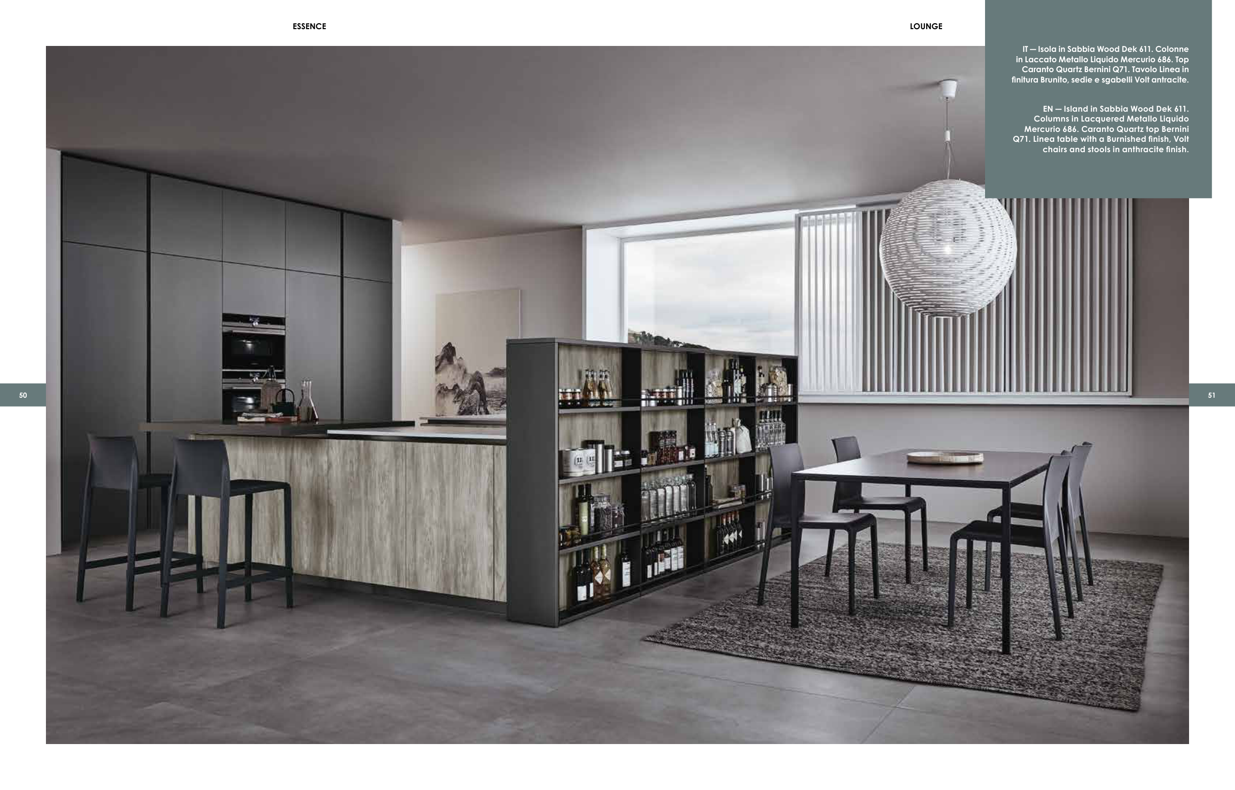 finitura Brunito, sedie e sgabelli Volt antracite.