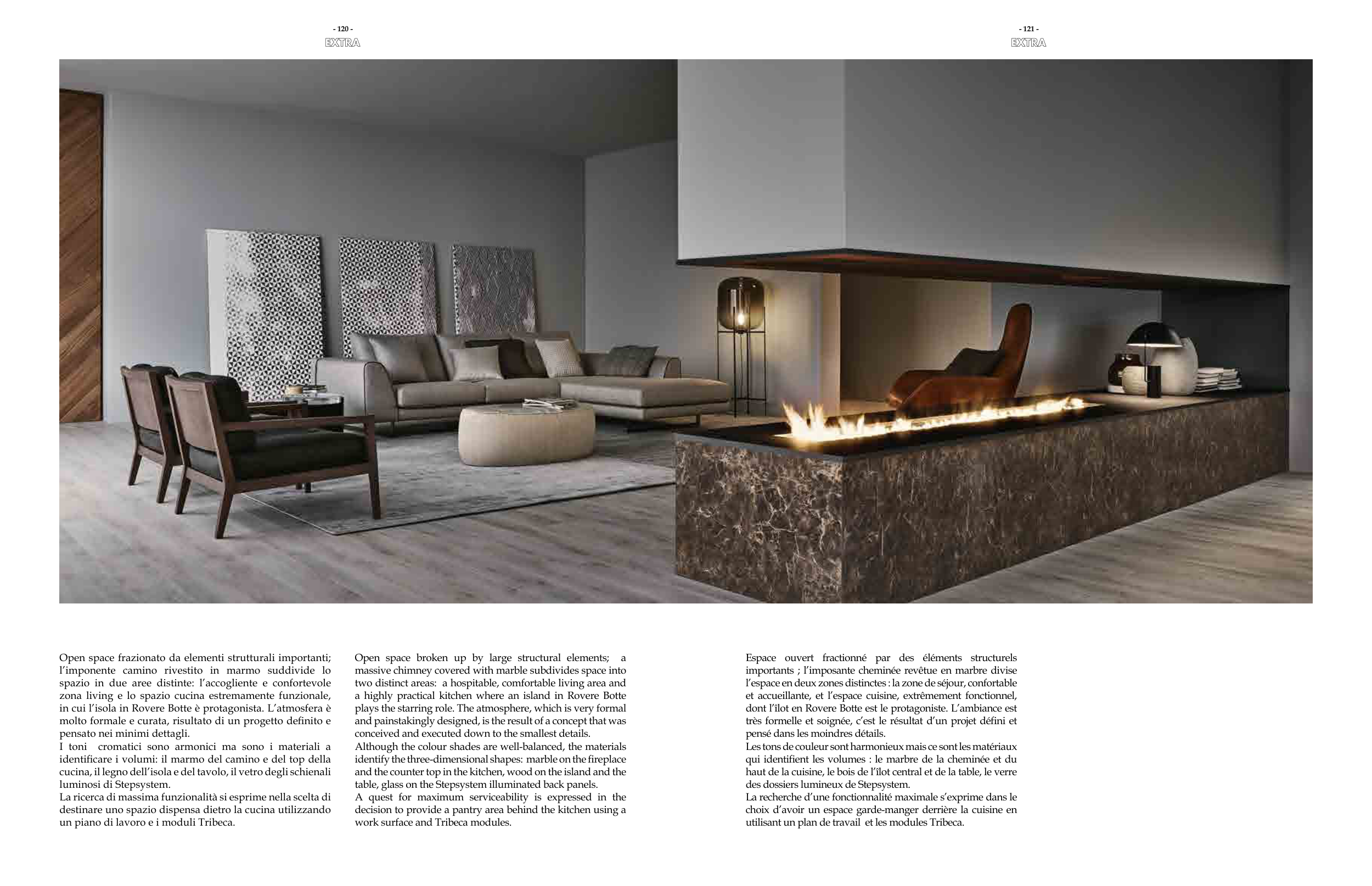 identificare i volumi: il marmo del camino e del top della