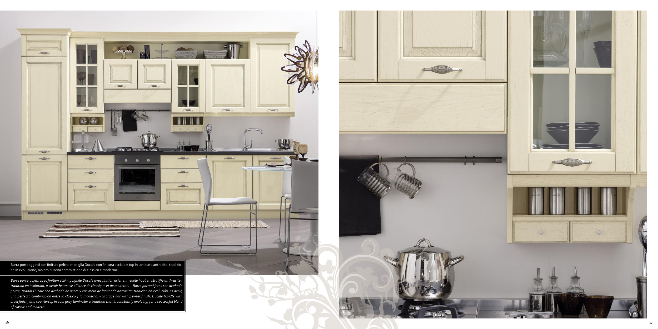 peltre, tirador Ducale con acabado de acero y encimera de laminado antracita: tradición en evolución, es decir,