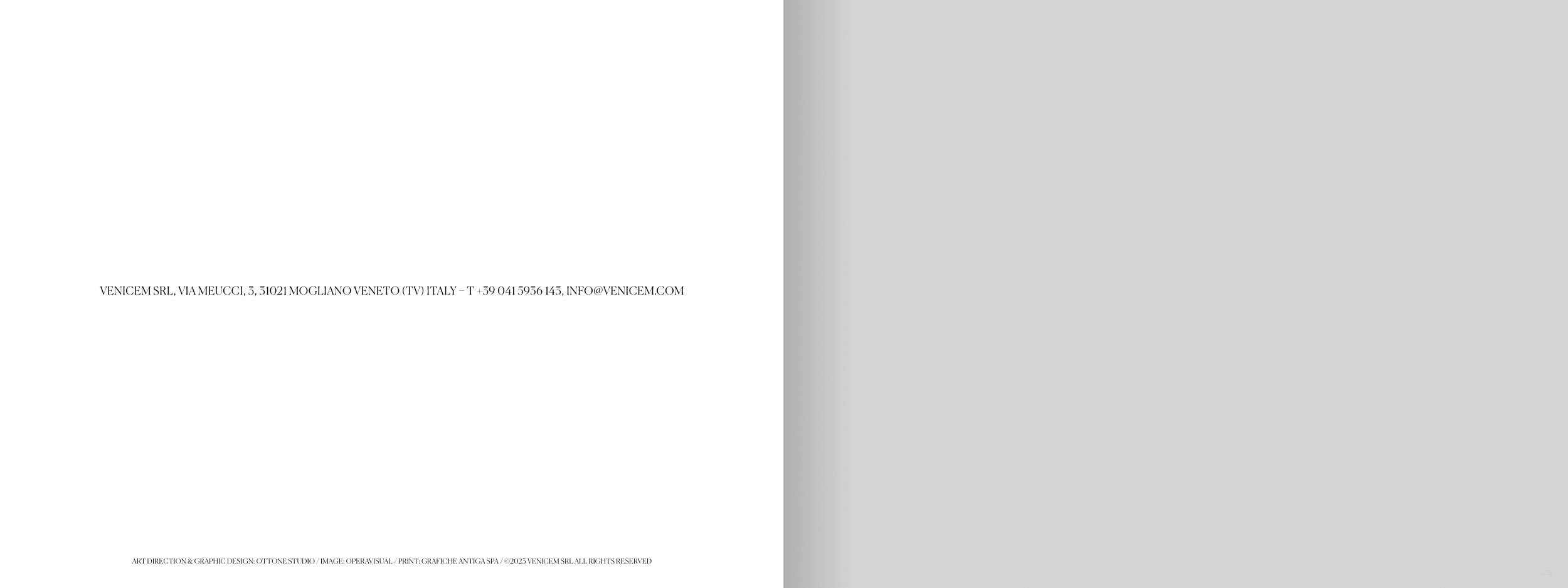 ART DIRECTION & GRAPHIC DESIGN: OTTONE STUDIO / IMAGE: OPERAVISUAL / PRINT: GRAFICHE ANTIGA SPA / ©2023 VENICEM SRL ALL RIGHTS RESERVED