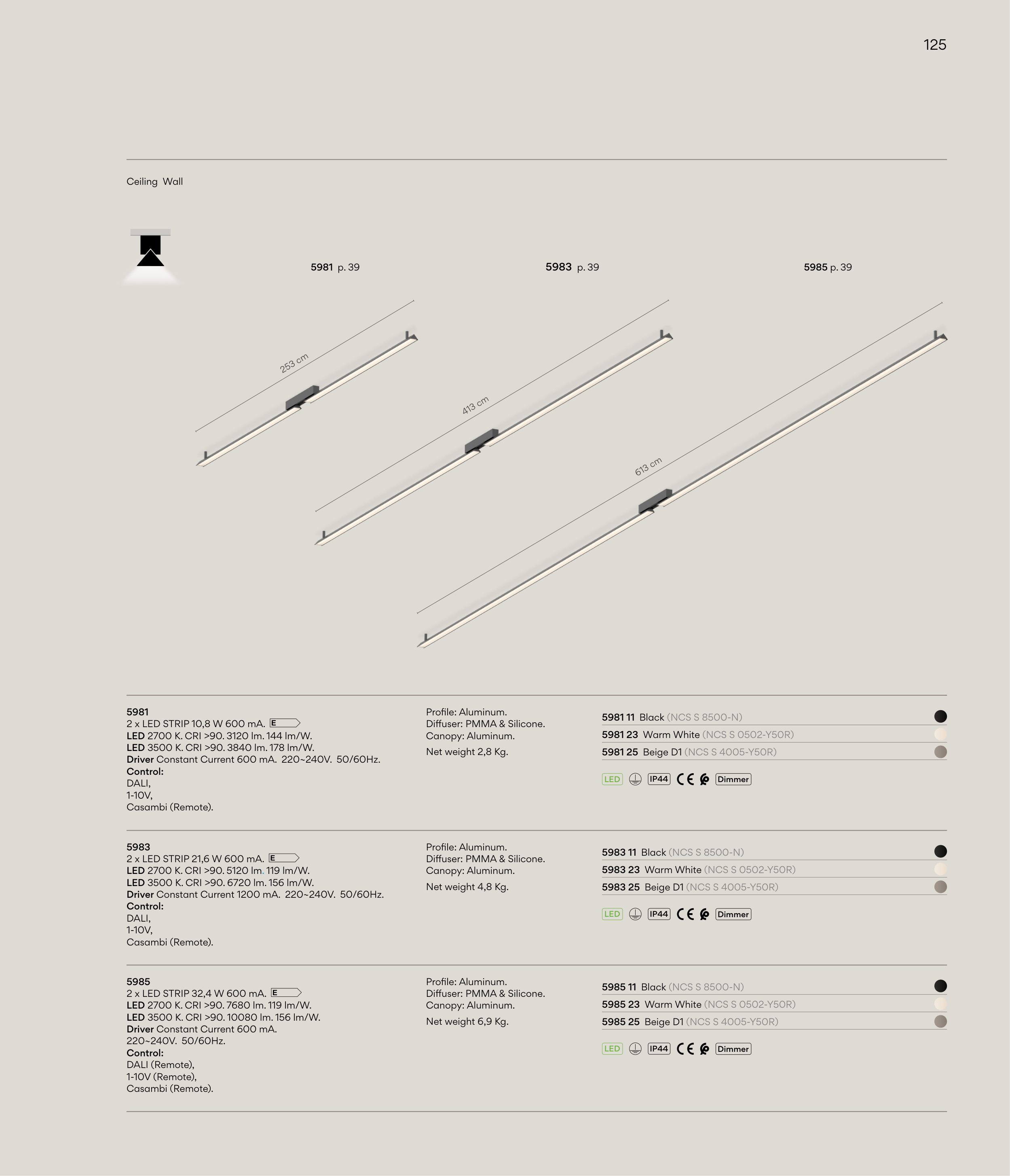 LED 3500 K. CRI >90. 6720 lm. 156 lm/W.
