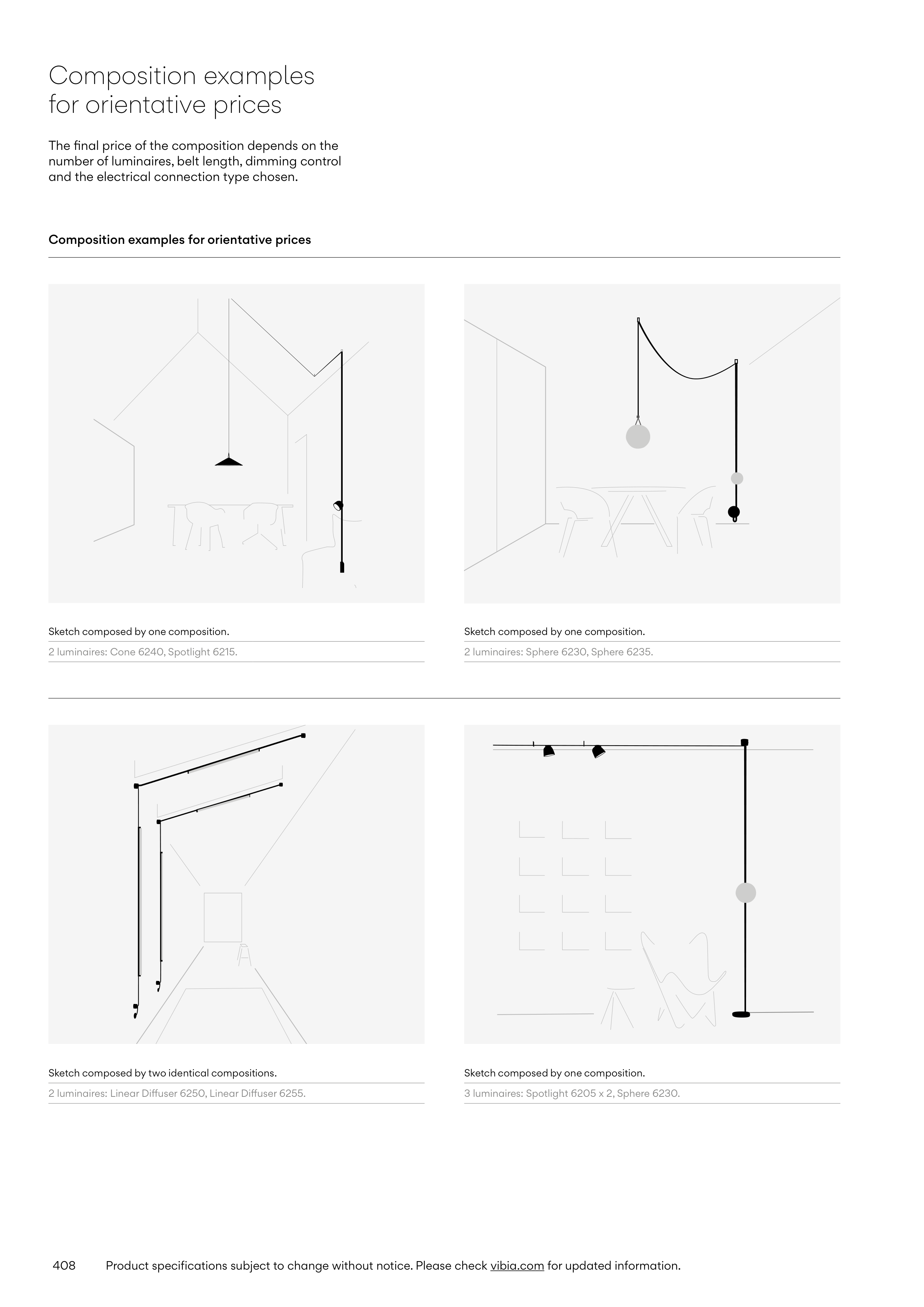 3 luminaires: Spotlight 6205 x 2, Sphere 6230.