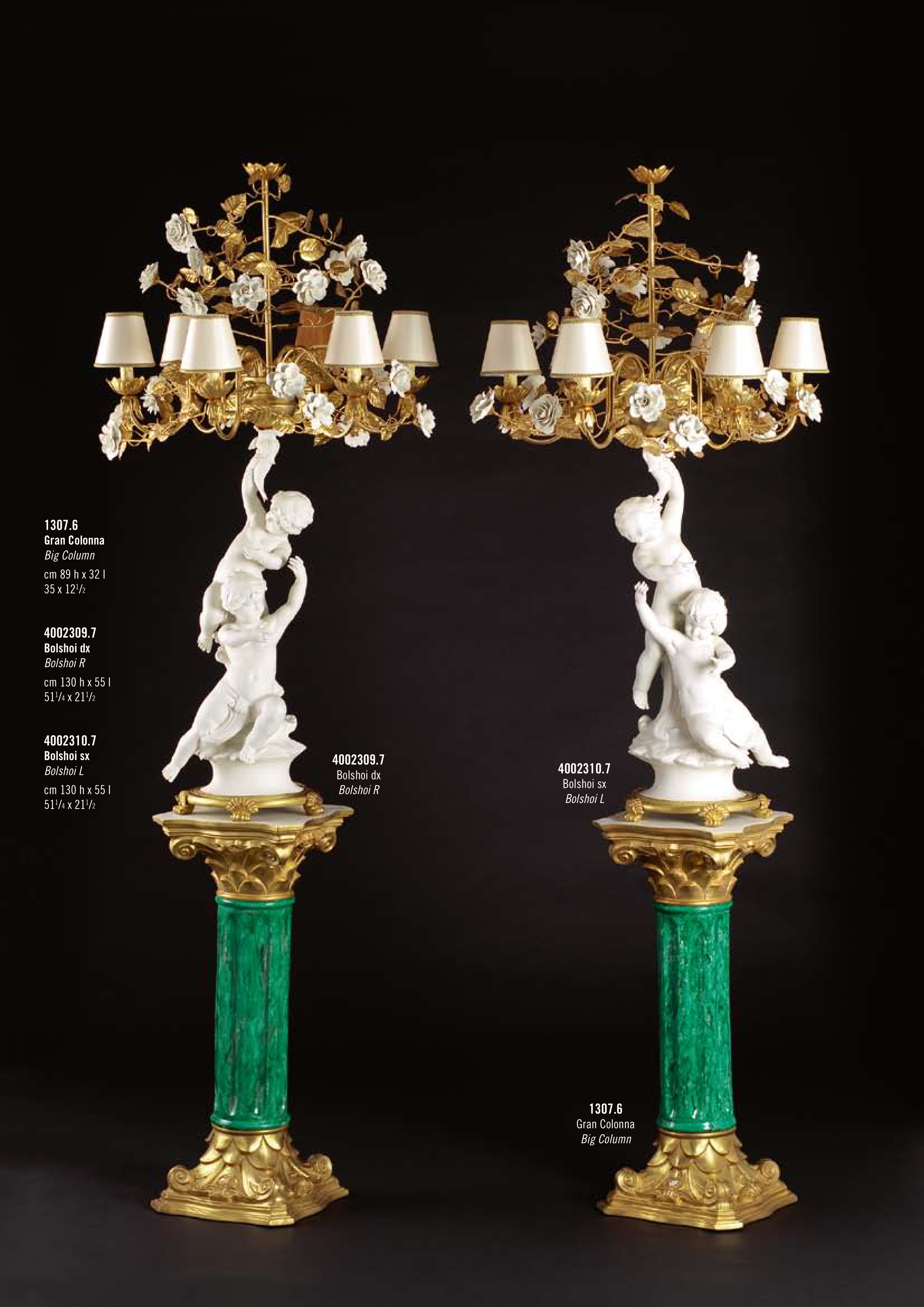1307.6 Gran Colonna Big Column cm 89 h x 32 l 35 x 121/2 4002309.7 Bolshoi dx Bolshoi R cm 130 h x 55 l 511/4 x 211/2 4002310.7 Bolshoi sx Bolshoi L cm 130 h x 55 l 511/4 x 211/2 4002309.7 Bolshoi dx Bolshoi R 4002310.7 Bolshoi sx Bolshoi L 1307.6 Gran Colonna Big Column
