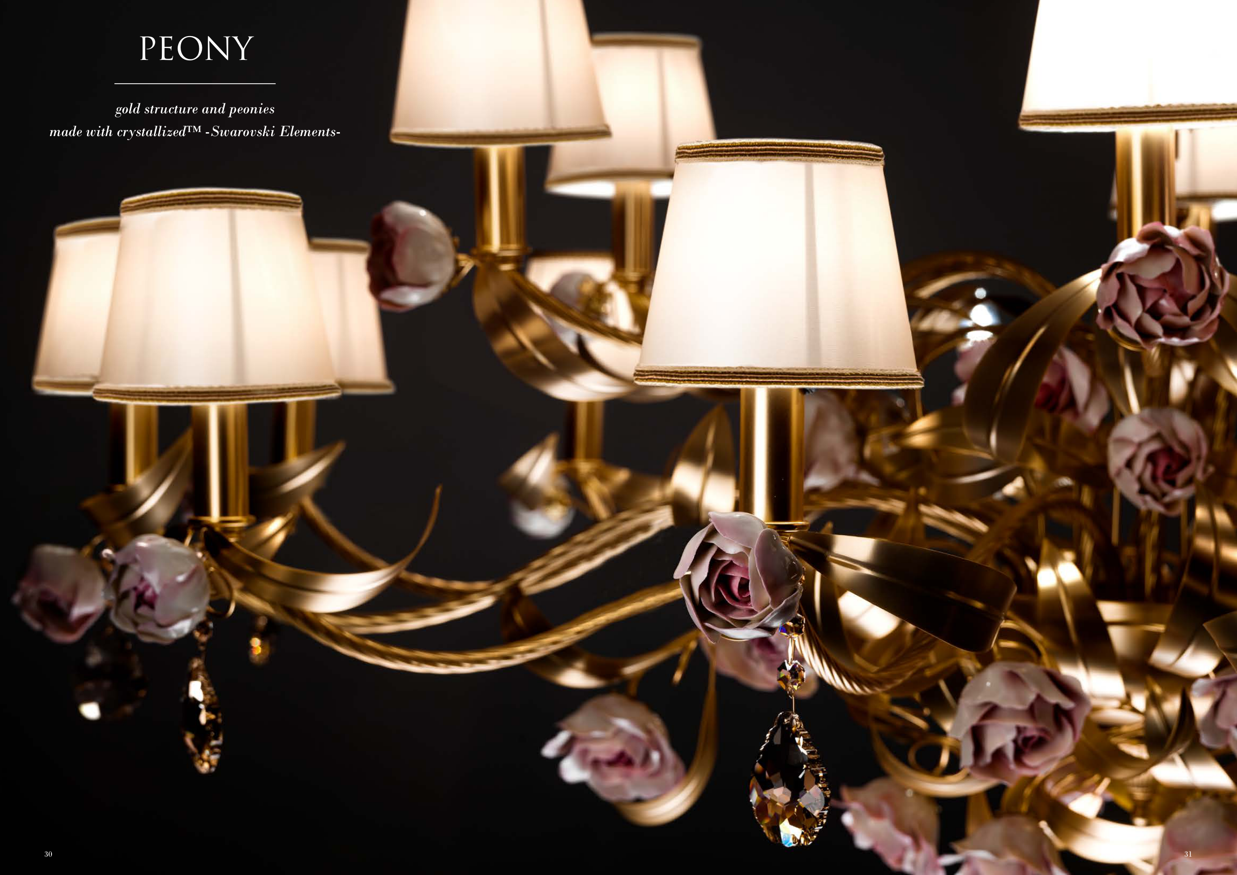 gold structure and peonies