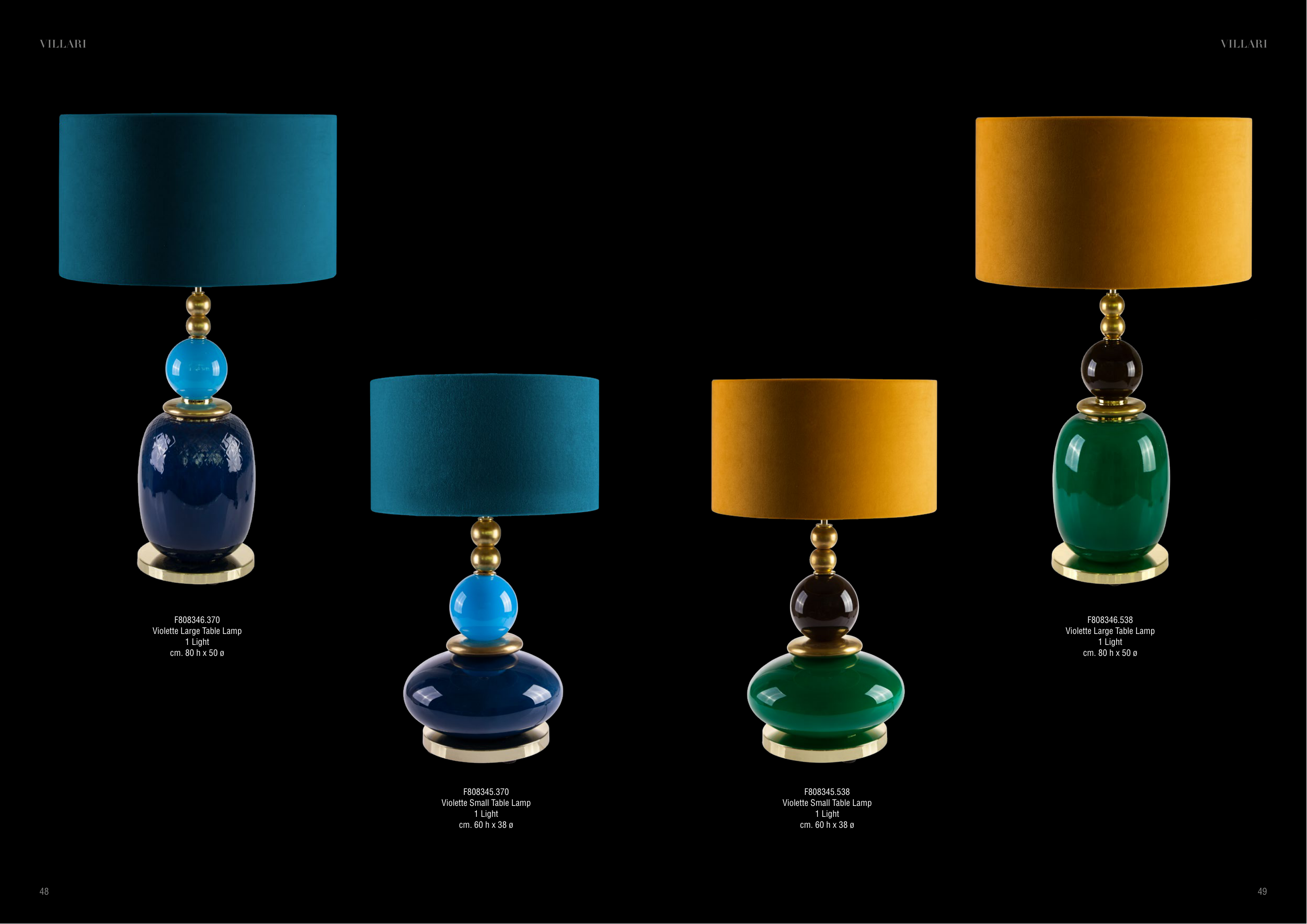 F808346.538 Violette Large Table Lamp 1 Light cm. 80 h x 50 ø F808345.538 Violette Small Table Lamp 1 Light cm. 60 h x 38 ø F808346.370 Violette Large Table Lamp 1 Light cm. 80 h x 50 ø F808345.370 Violette Small Table Lamp 1 Light cm. 60 h x 38 ø 49 48