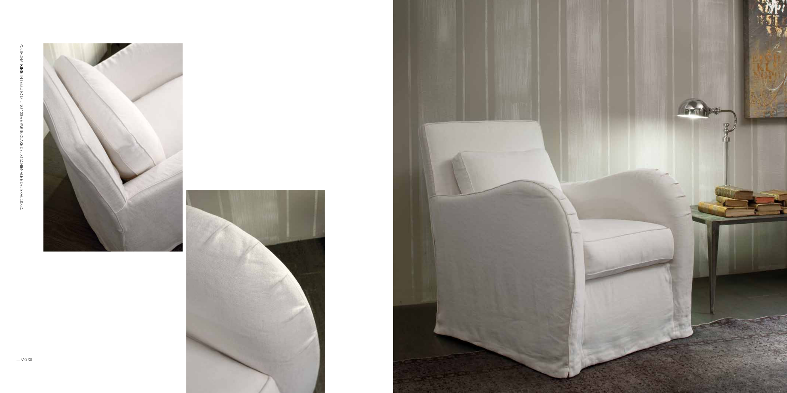 PoLTRoNA King IN TESSUTo DI LINo 100% E PARTICoLARE DELLo SCHIENALE E DEL BRACCIoLo.