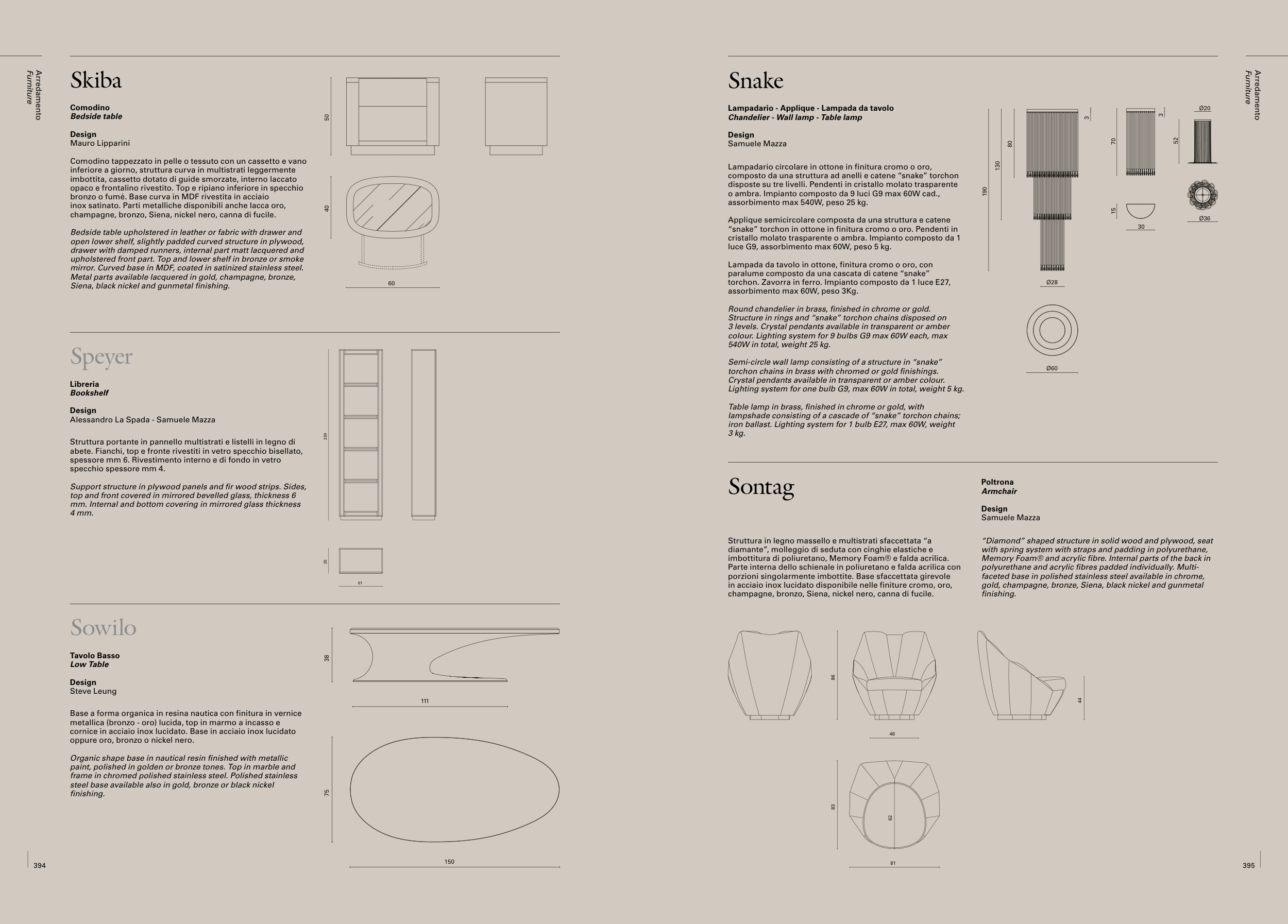 Metal parts available lacquered in gold, champagne, bronze,