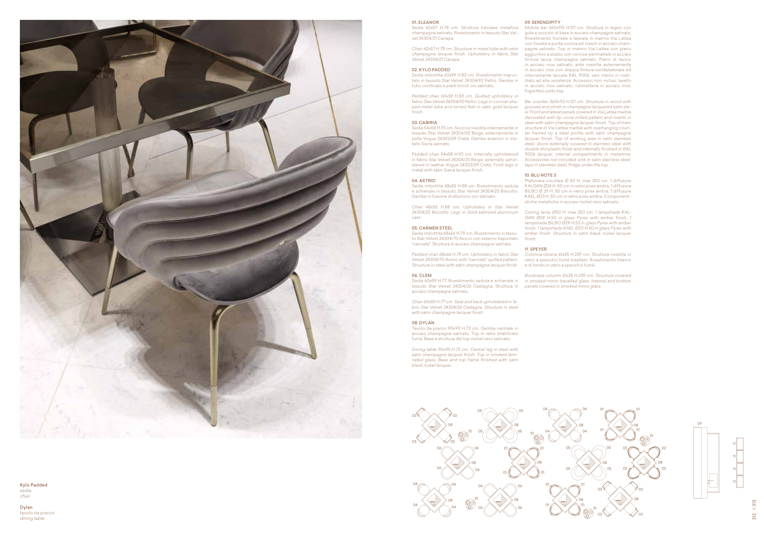 grooves and plinth in champagne lacquered satin ste-