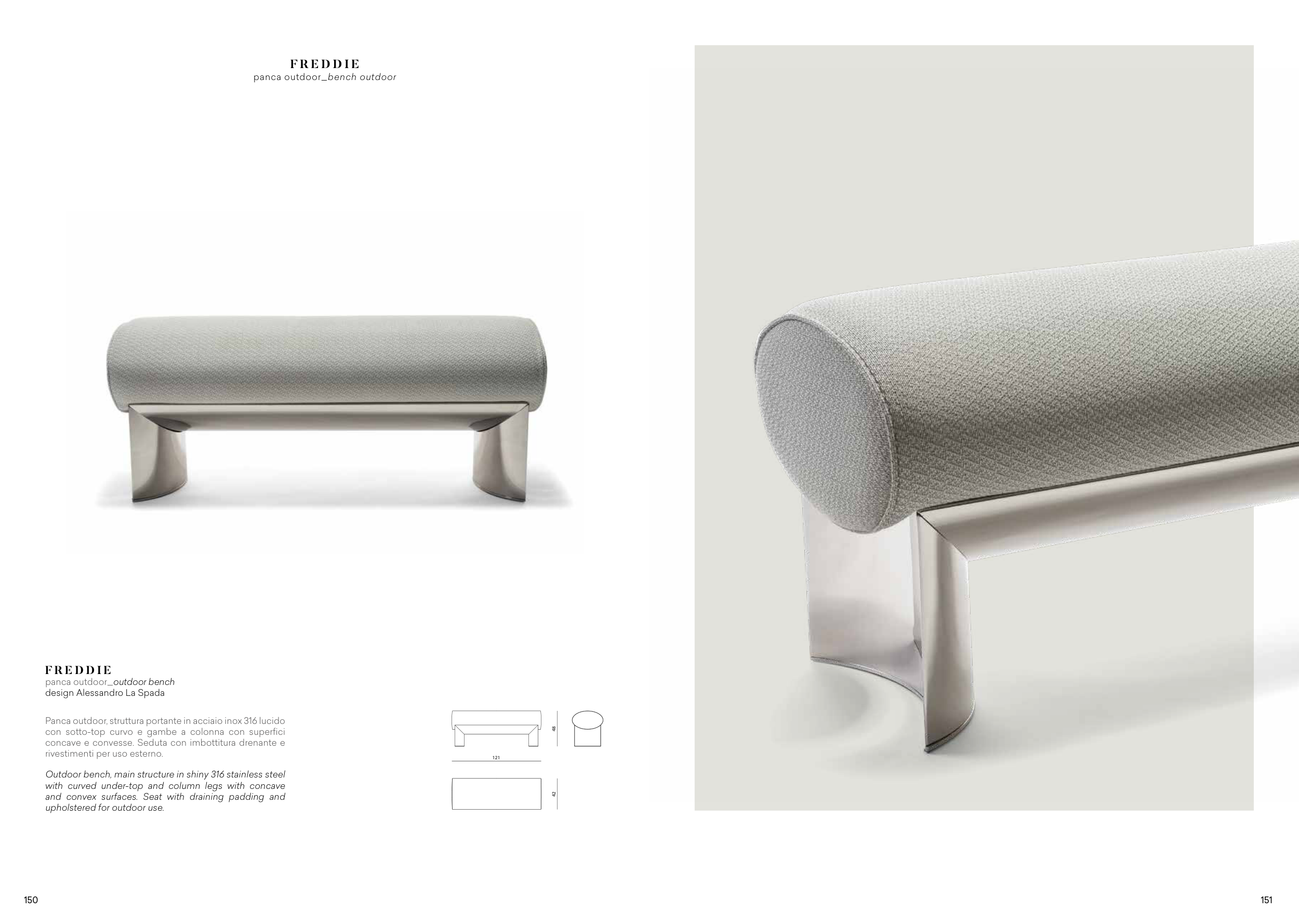 Panca outdoor, struttura portante in acciaio inox 316 lucido