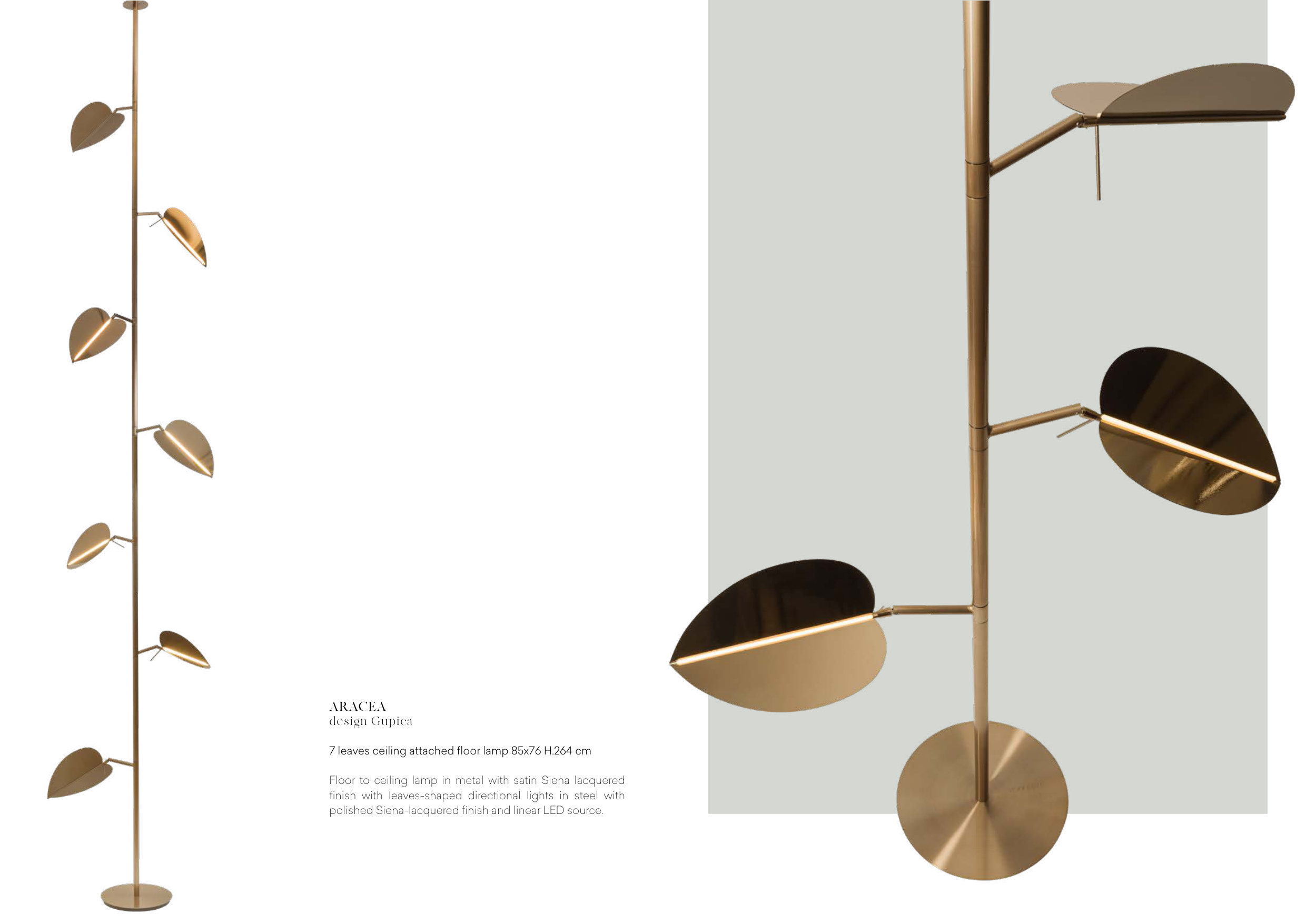 finish with leaves-shaped directional lights in steel with
