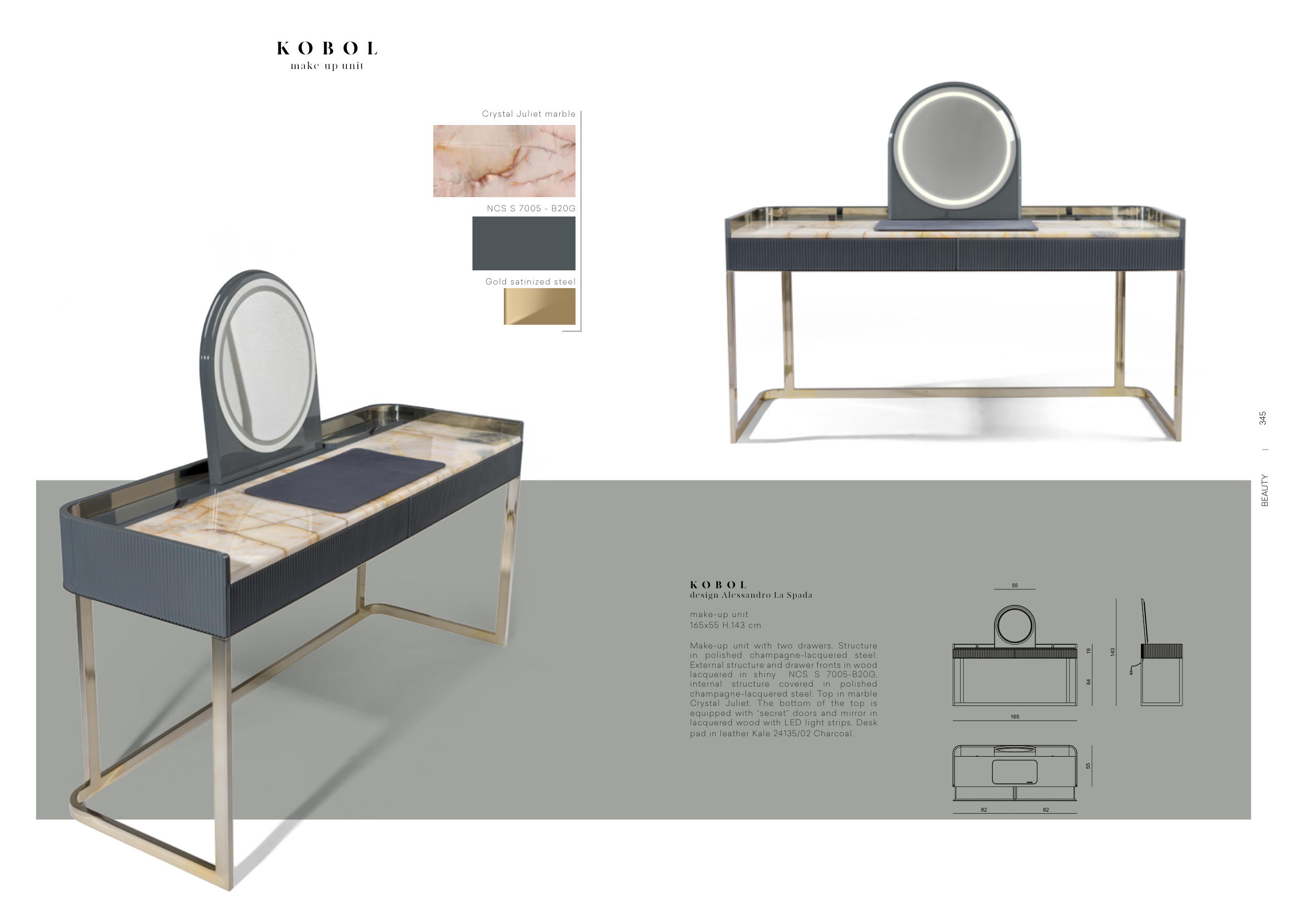 champagne-lacquered steel. Top in marble