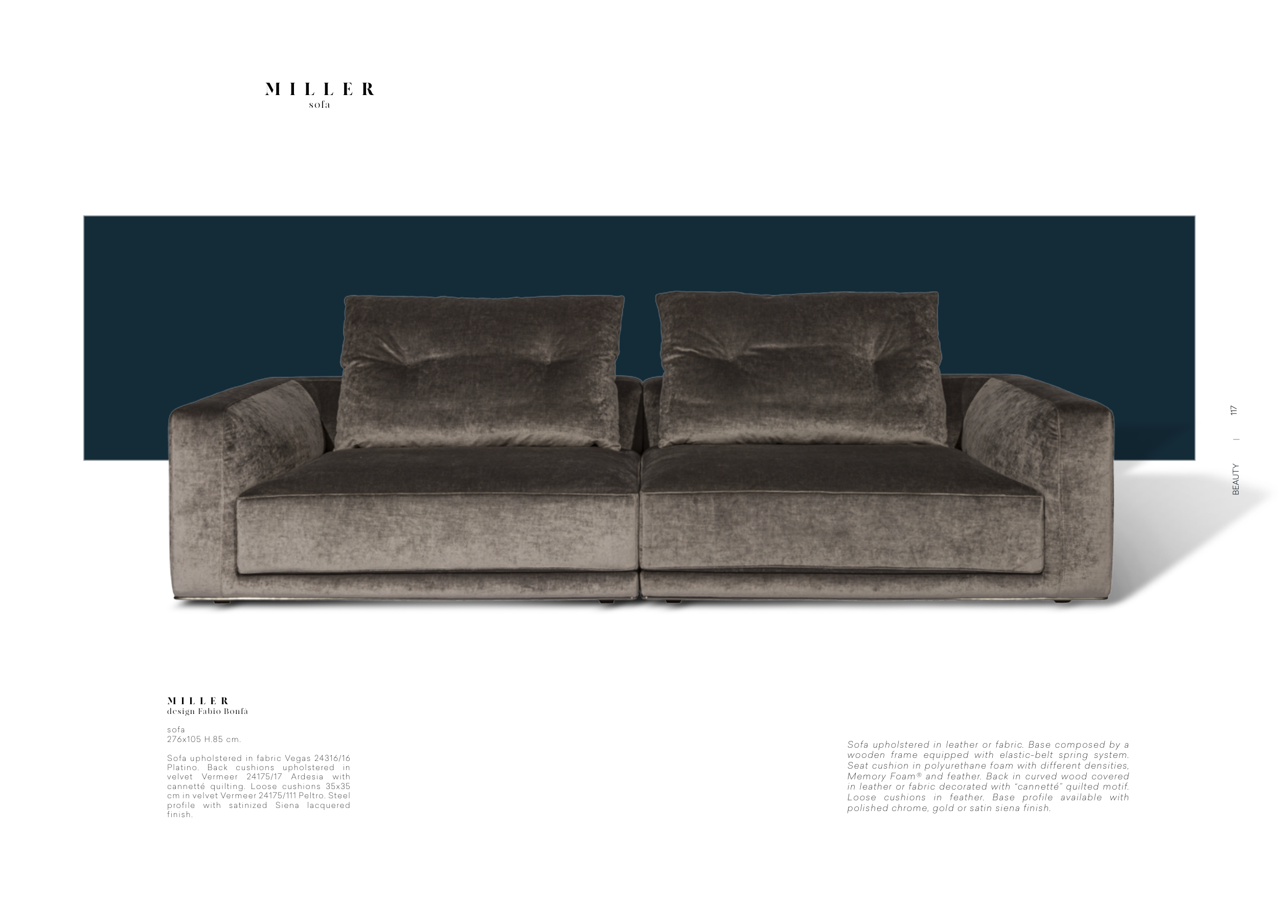 Platino. Back cushions upholstered in