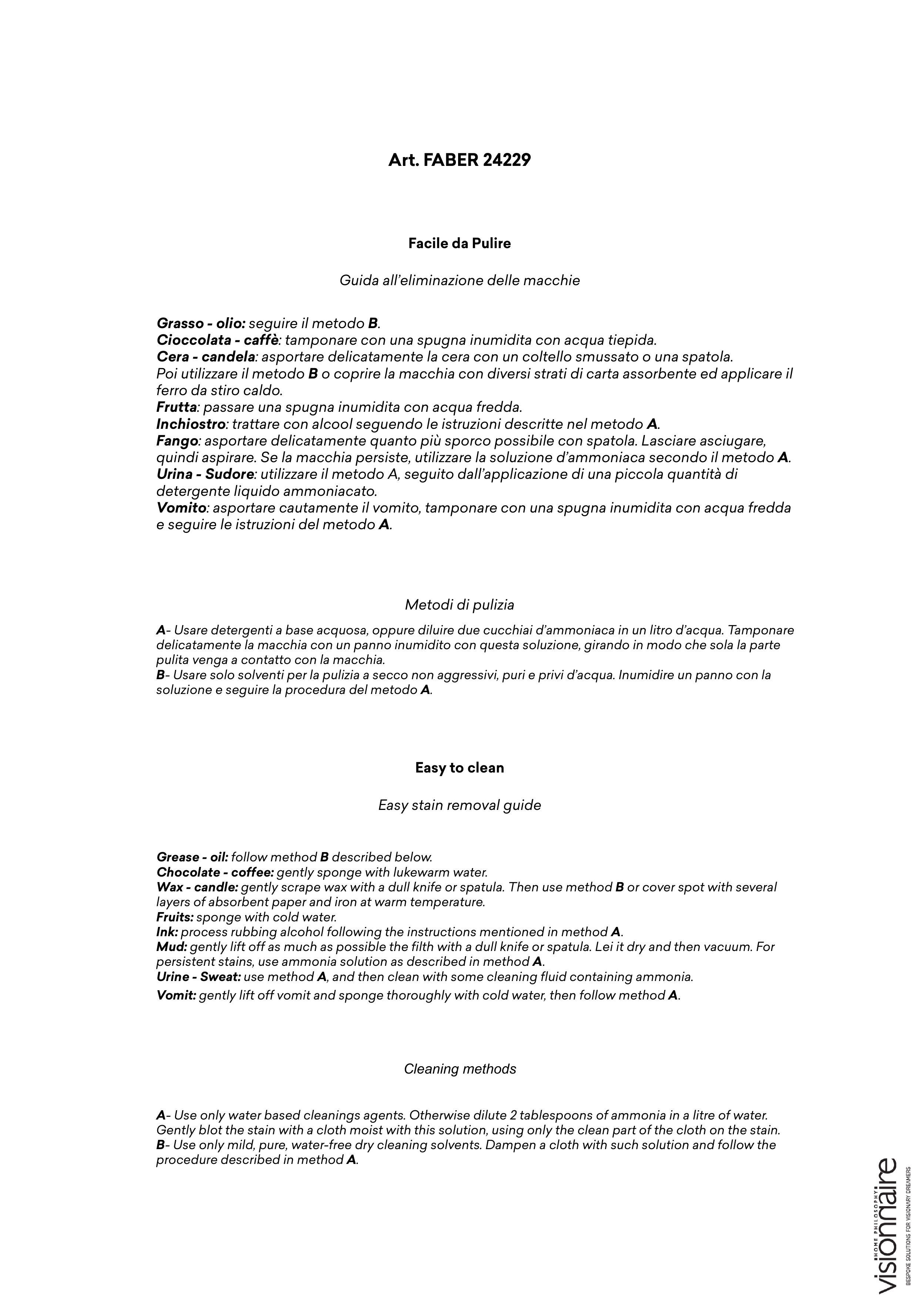 Visionnaire Italy Lead time 120 days