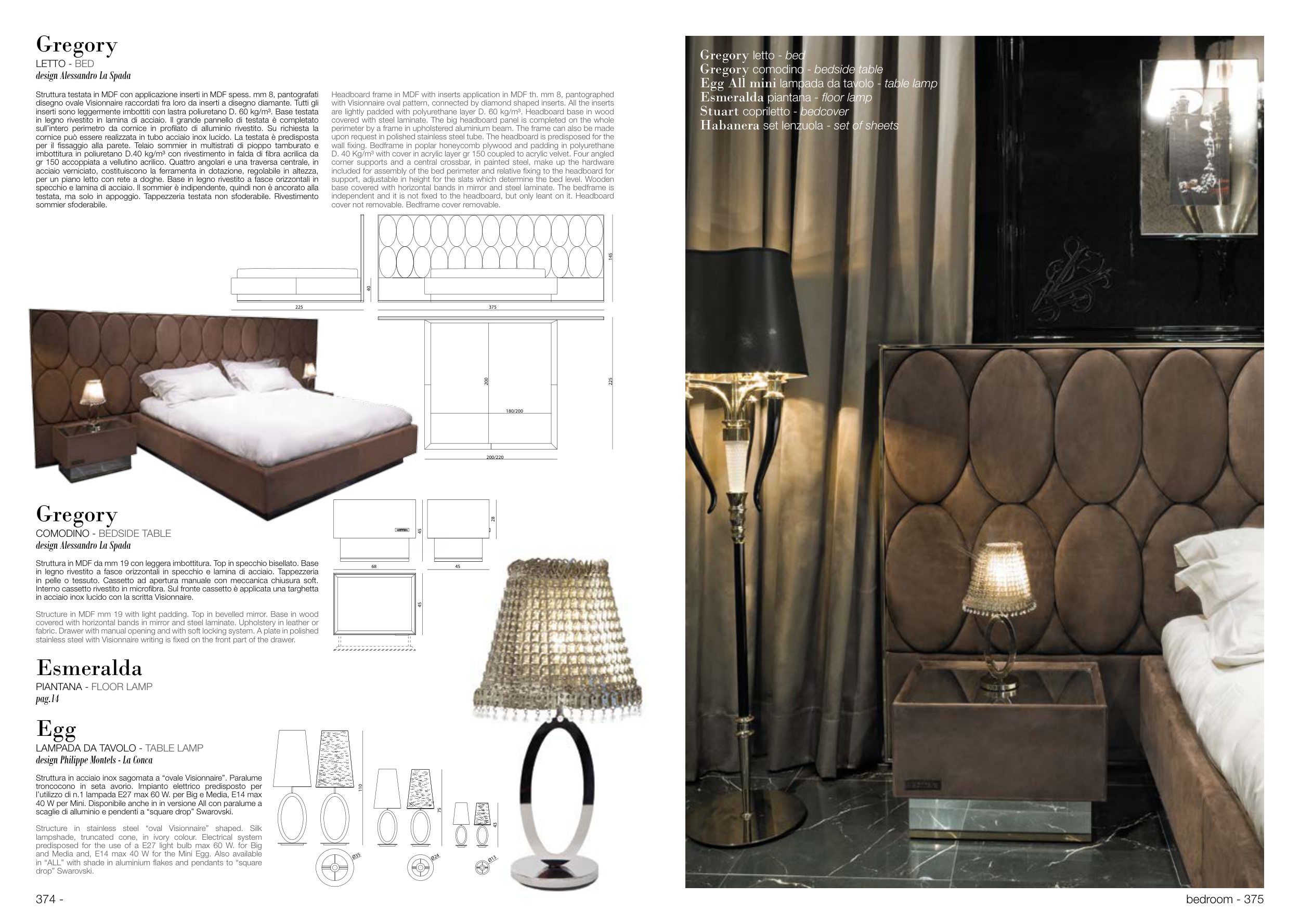 in legno rivestito in lamina di acciaio. Il grande pannello di testata è completato