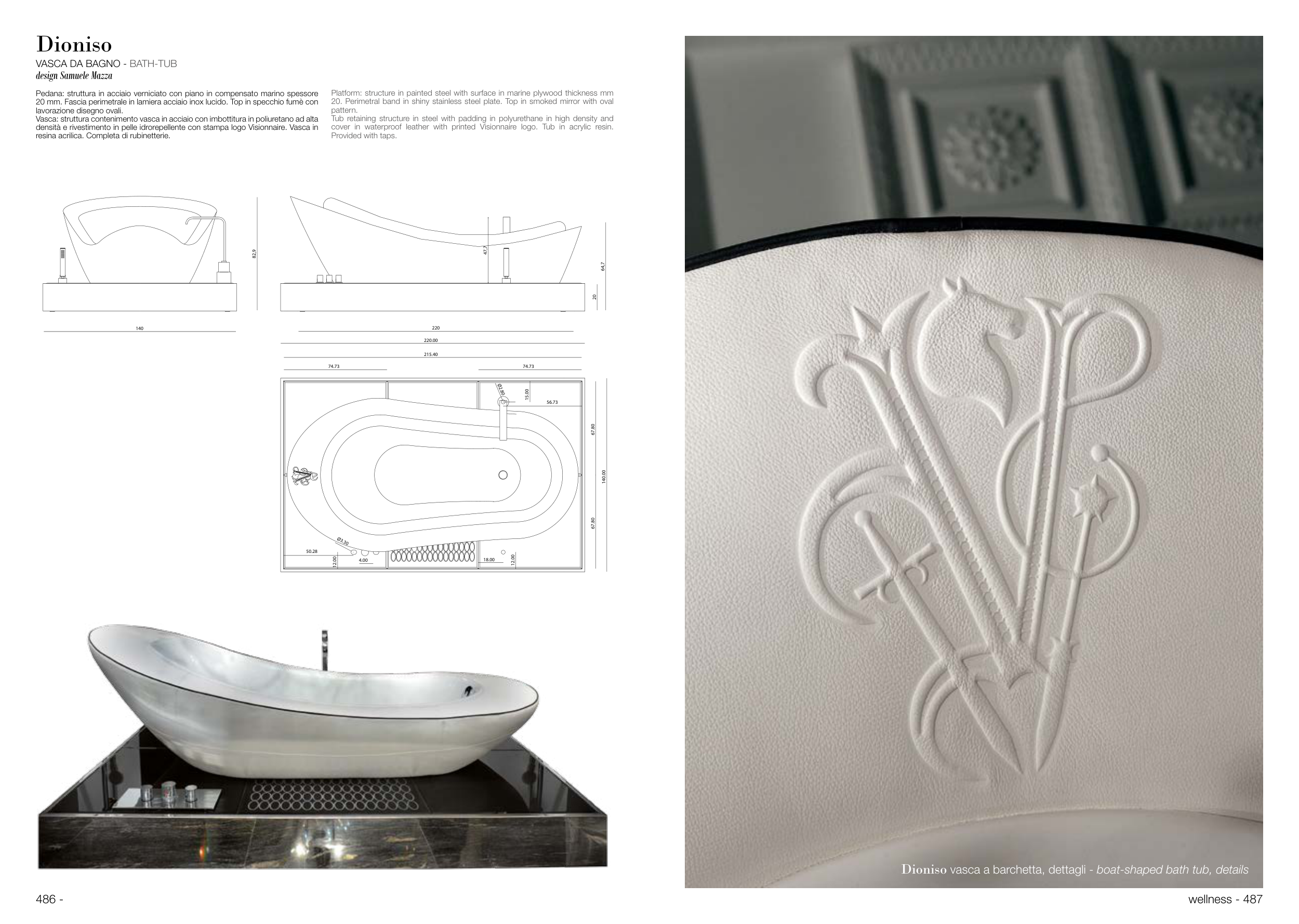 densità e rivestimento in pelle idrorepellente con stampa logo Visionnaire. Vasca in