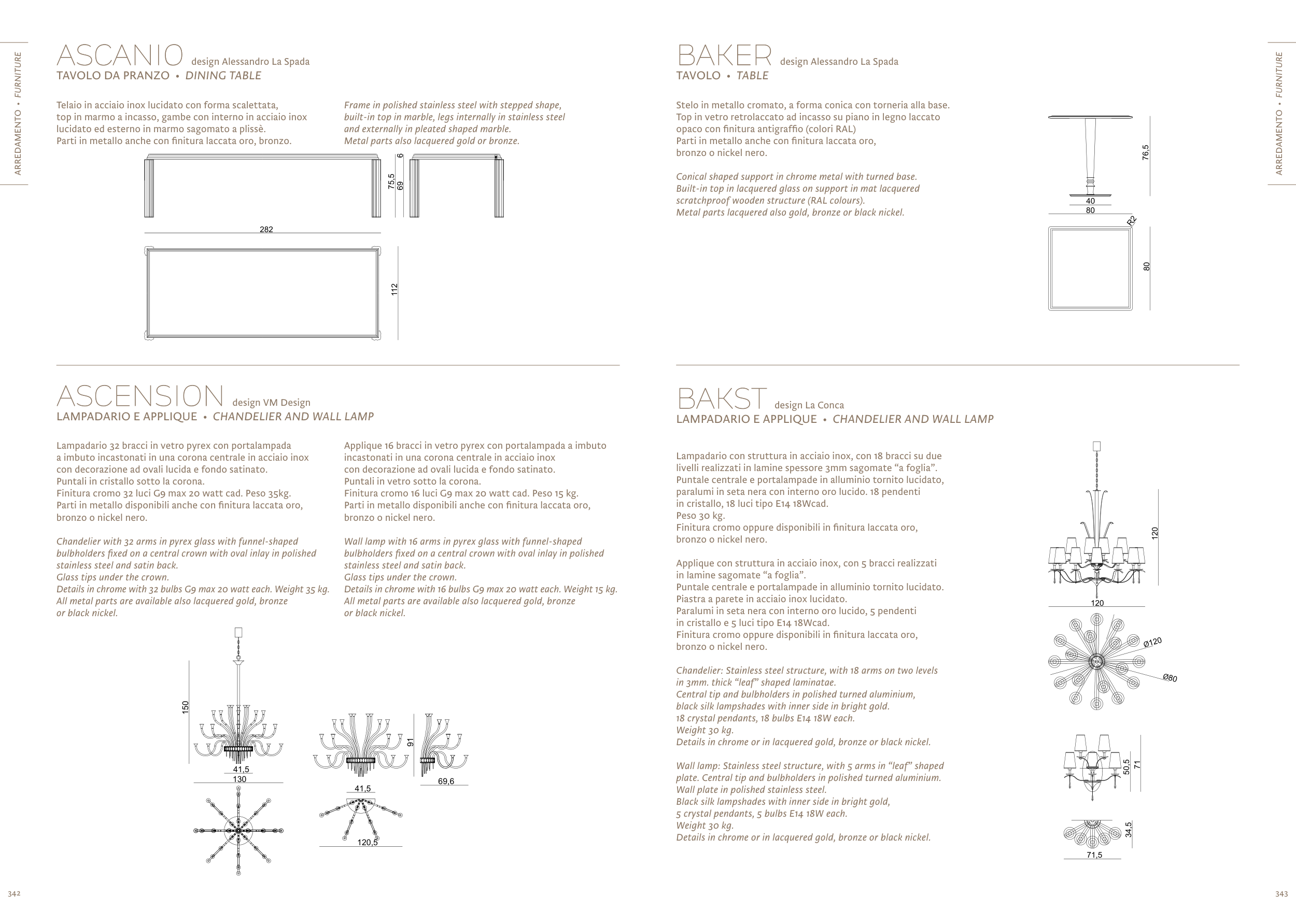 Details in chrome or in lacquered gold, bronze or black nickel.