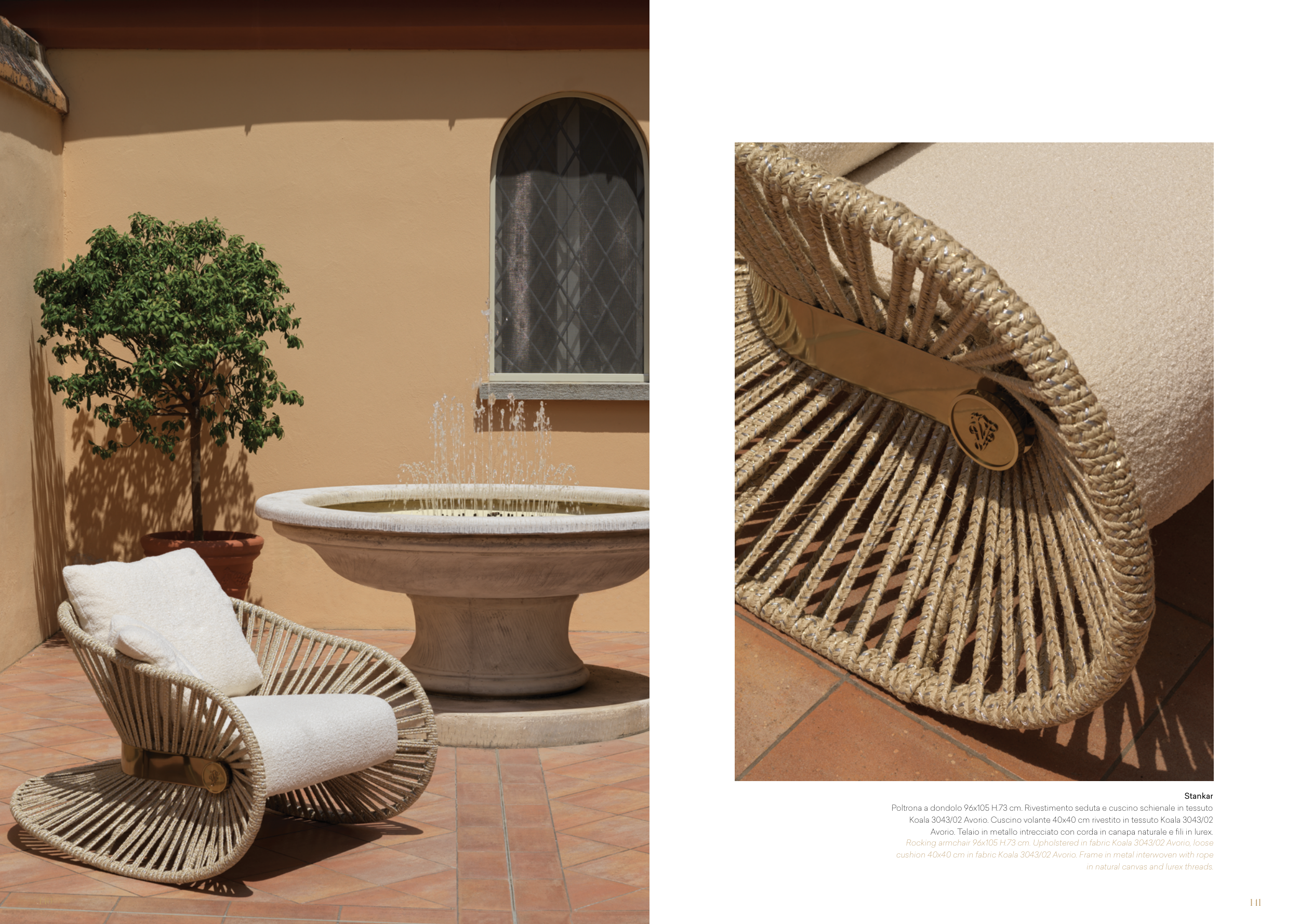 cushion 40x40 cm in fabric Koala 3043/02 Avorio. Frame in metal interwoven with rope