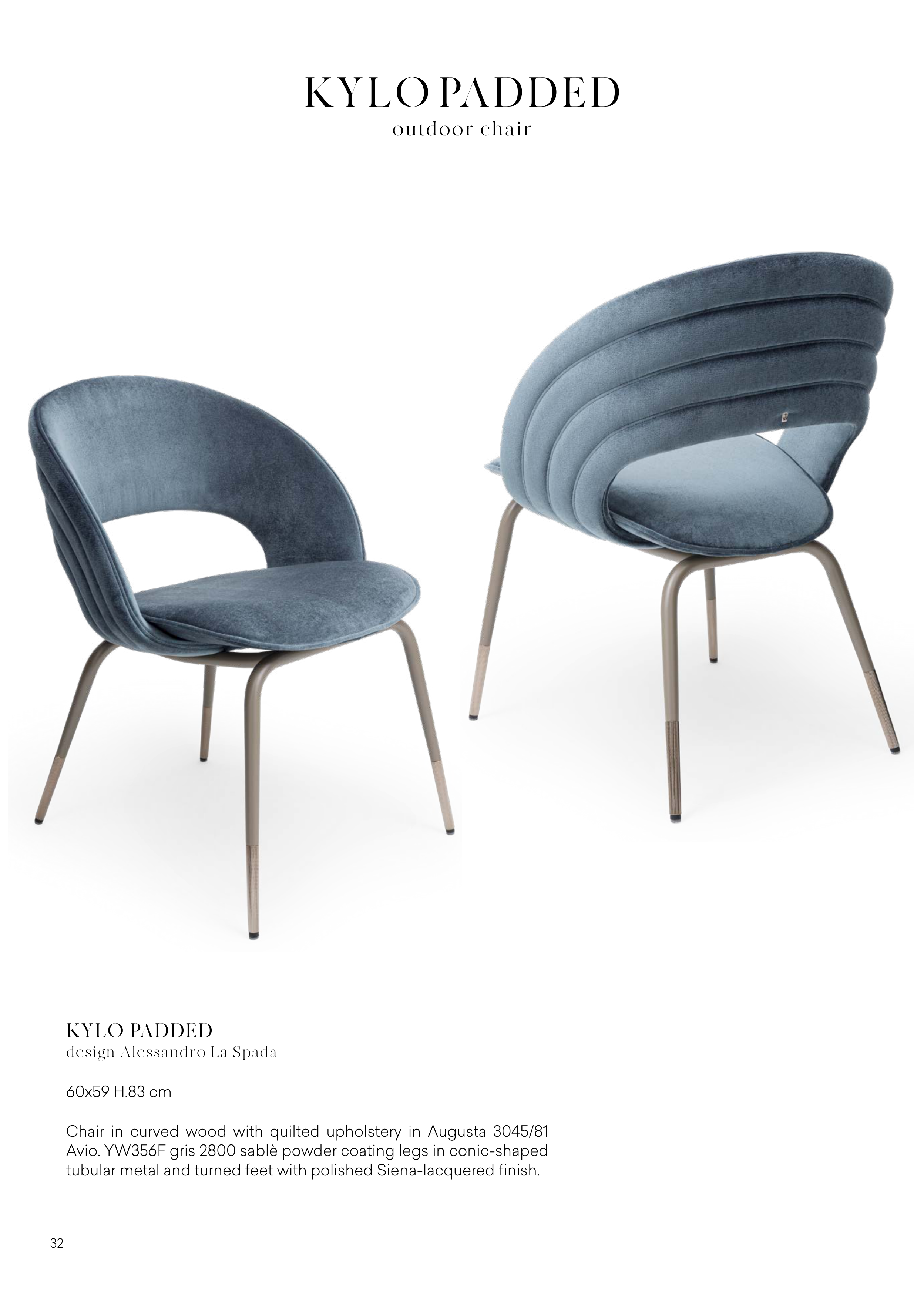 Chair in curved wood with quilted upholstery in Augusta 3045/81