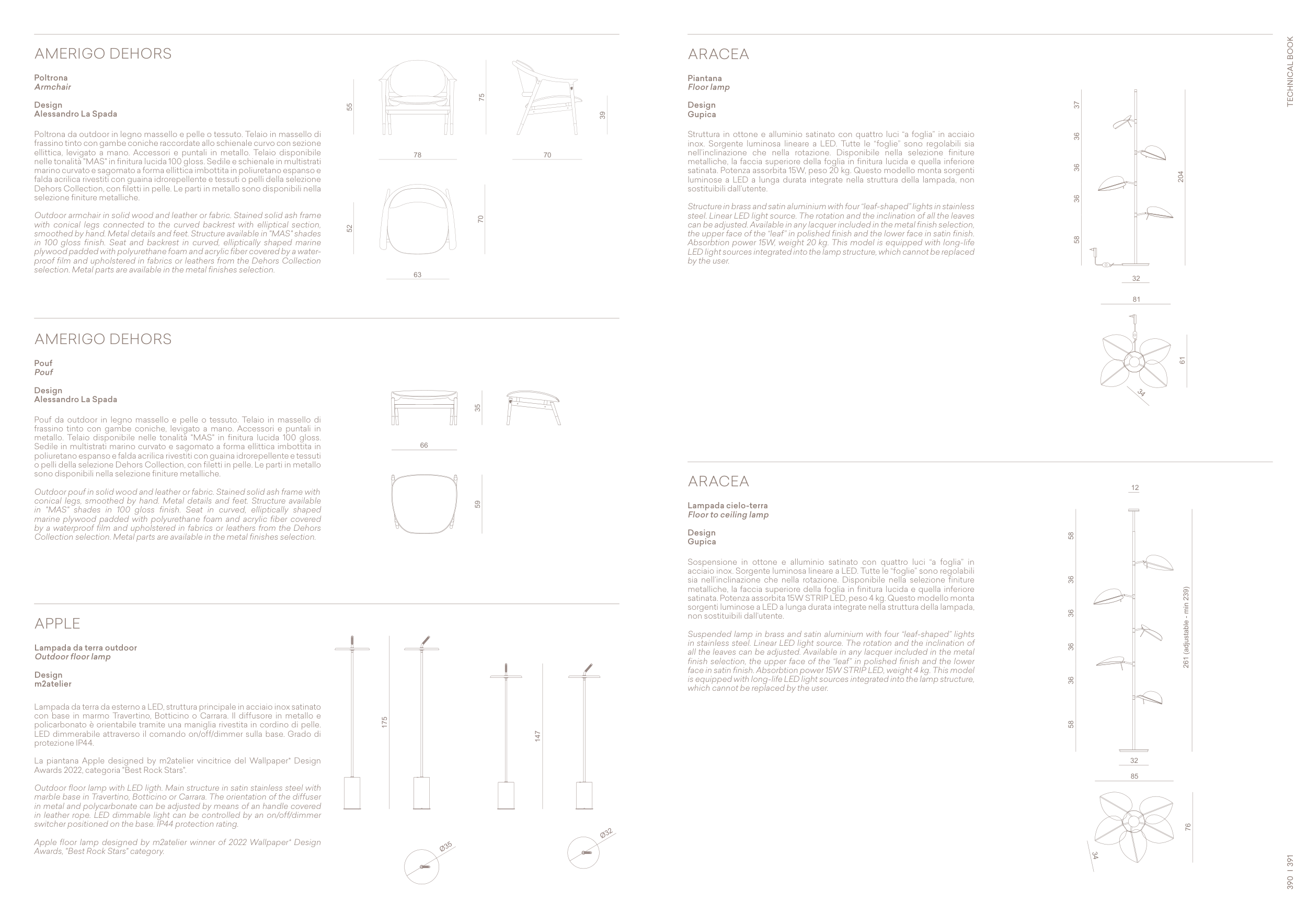 Dehors Collection, con filetti in pelle. Le parti in metallo sono disponibili nella