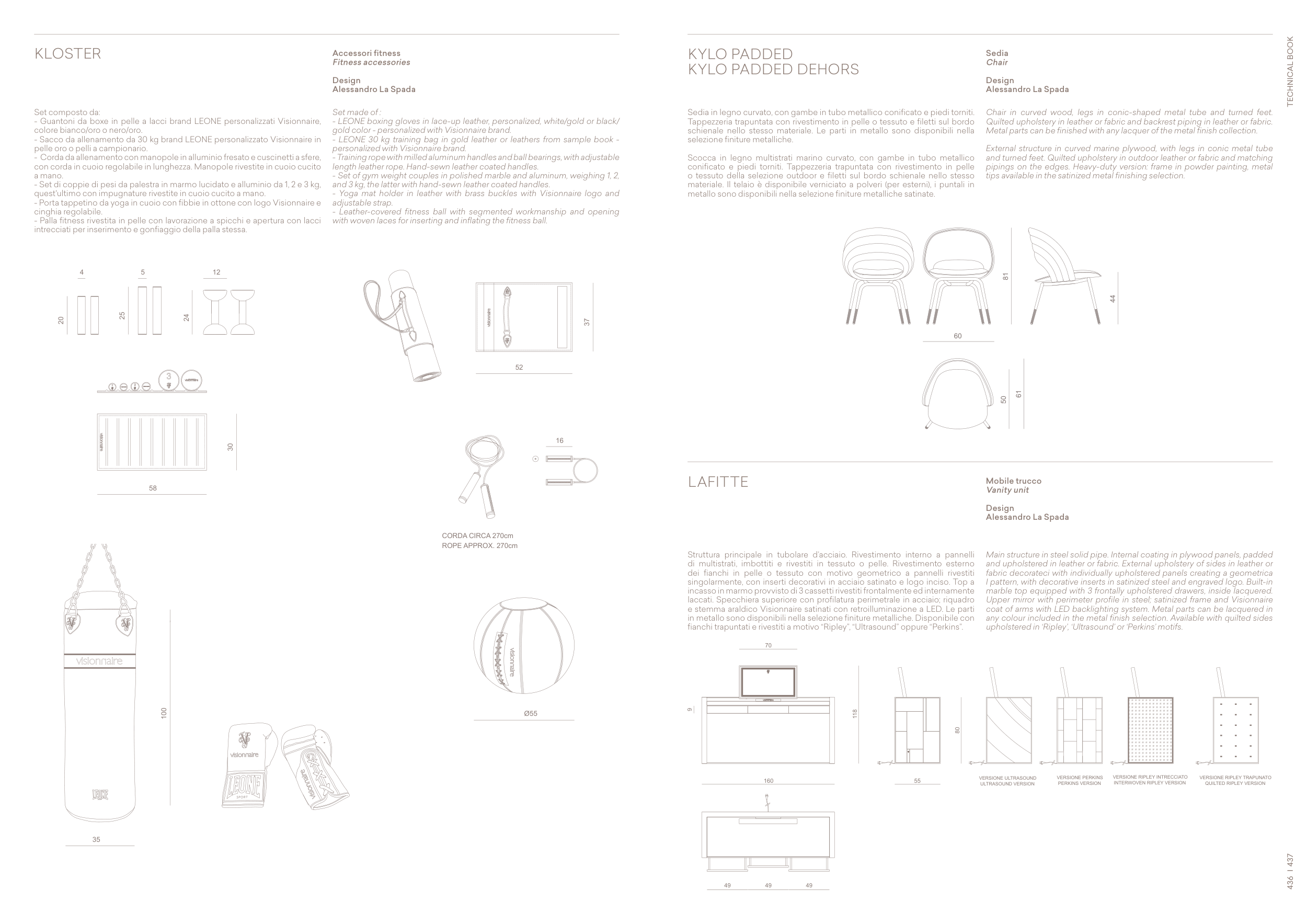 fianchi trapuntati e rivestiti a motivo “Ripley”, “Ultrasound” oppure “Perkins”.