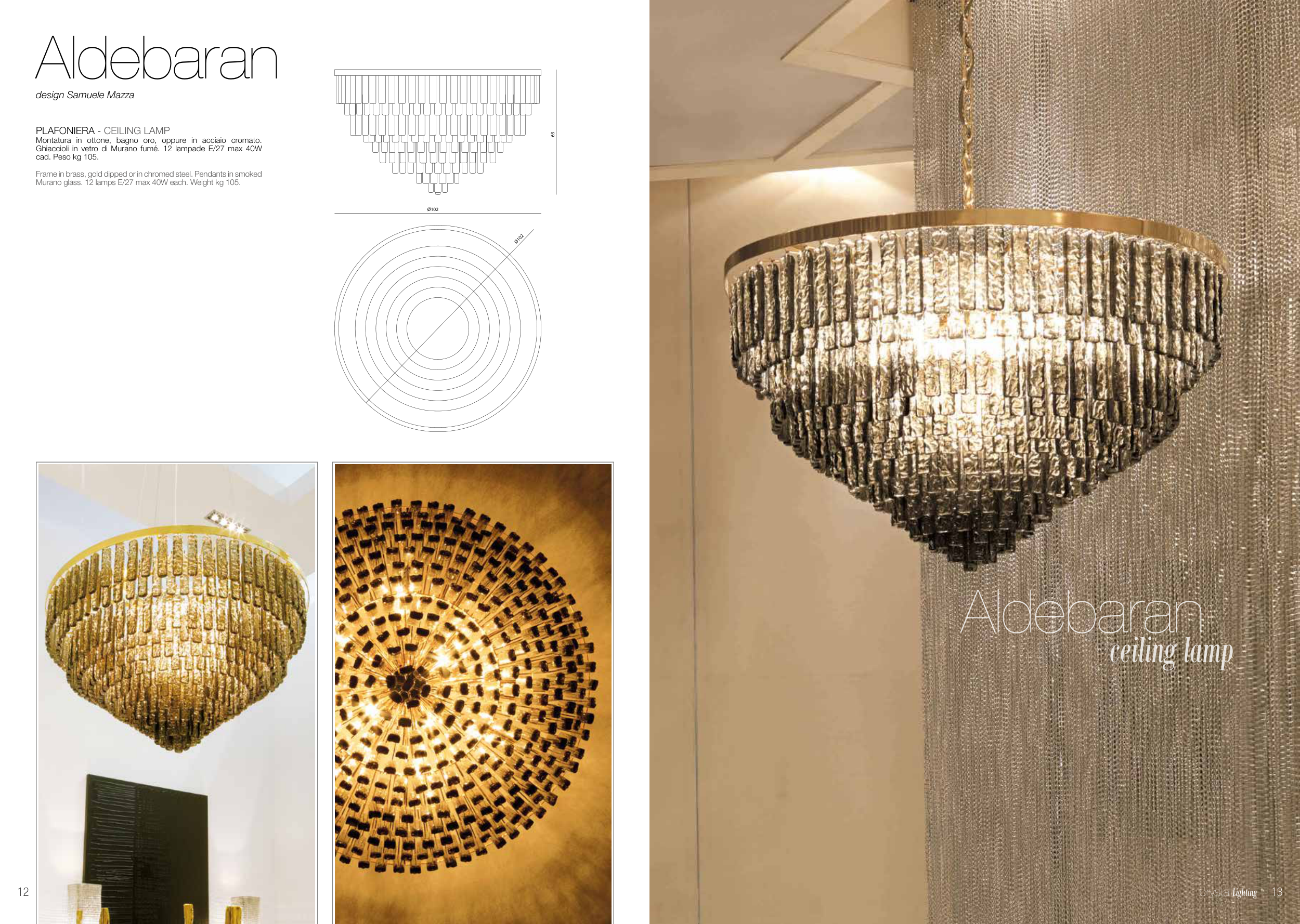 Murano glass. 12 lamps E/27 max 40W each. Weight kg 105.