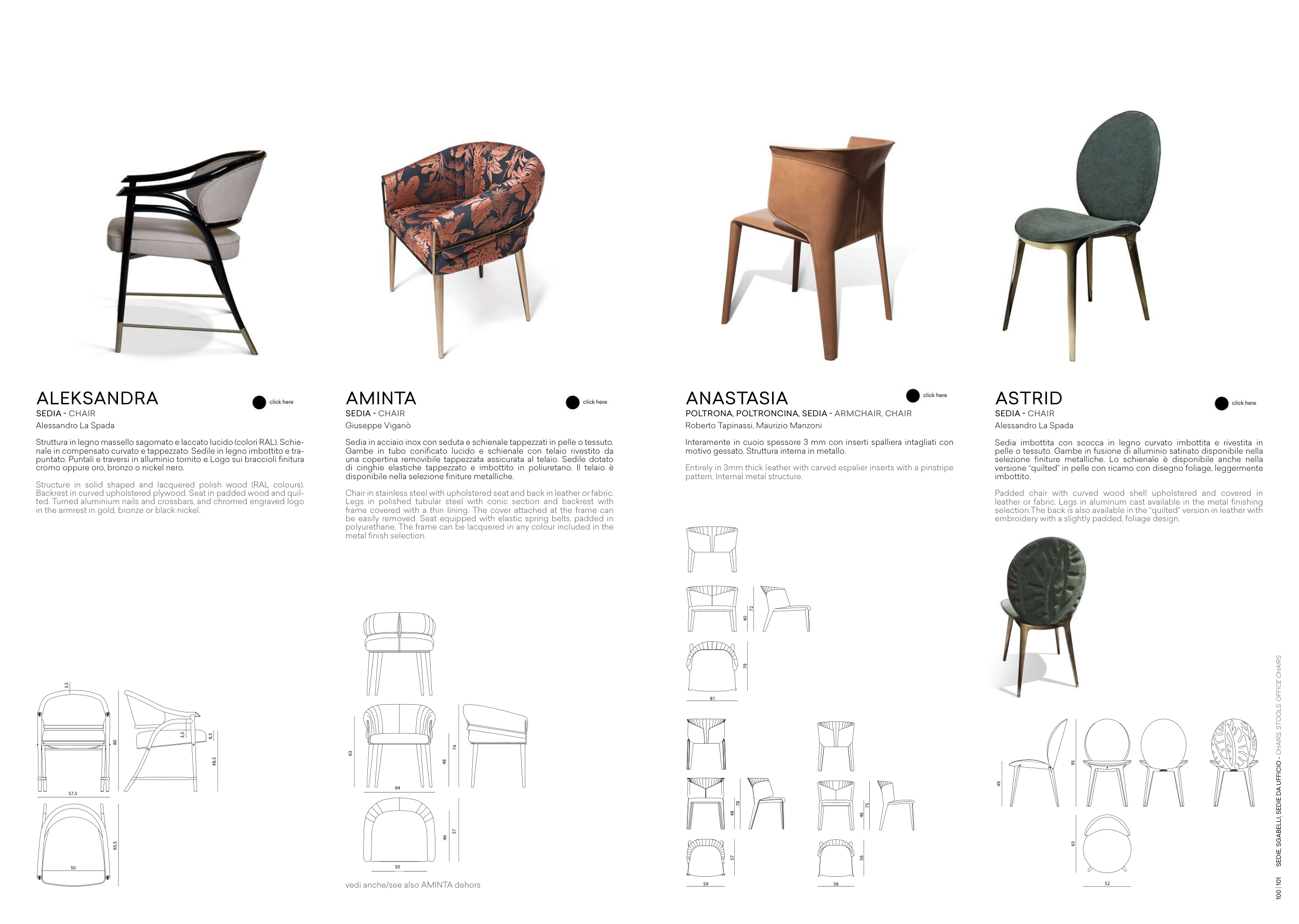selezione finiture metalliche. Lo schienale è disponibile anche nella
