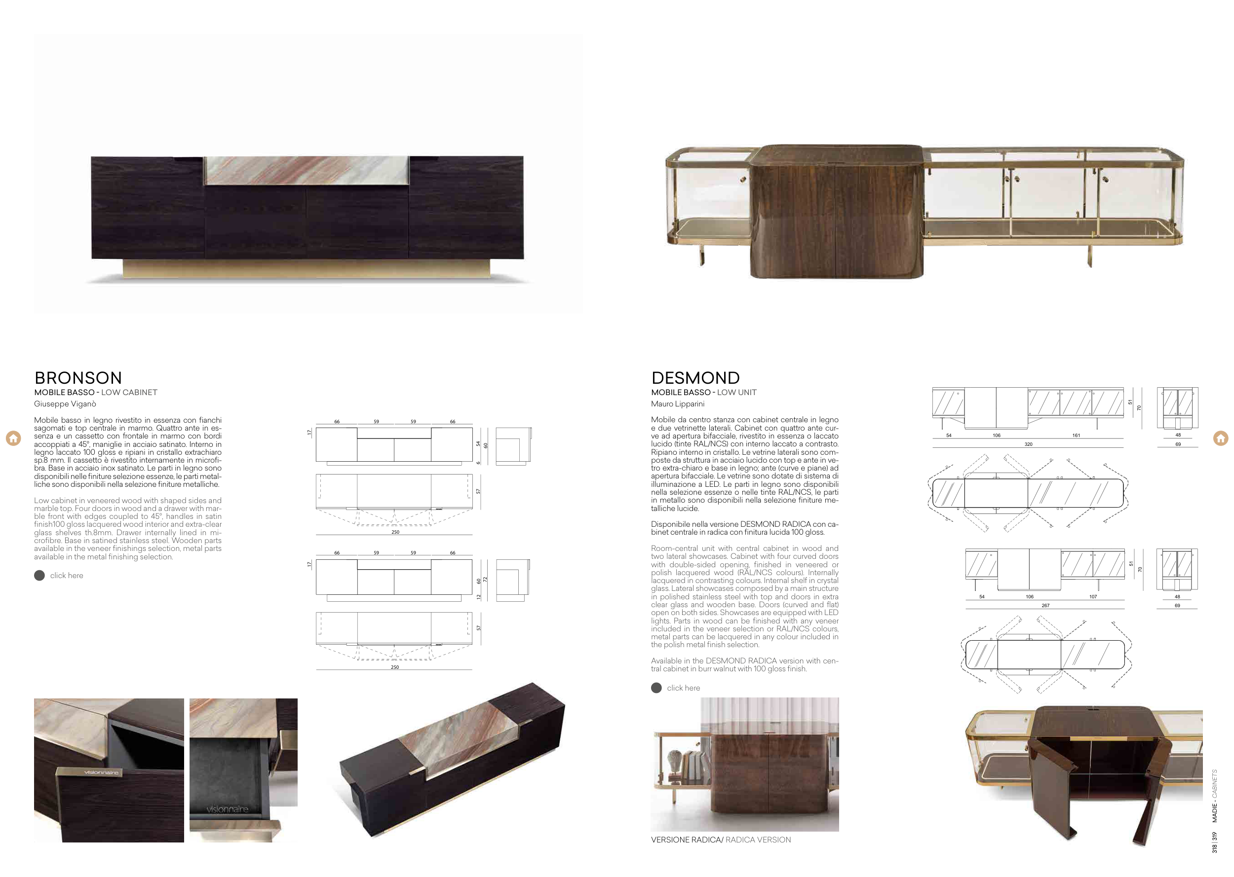 with double-sided opening, finished in veneered or