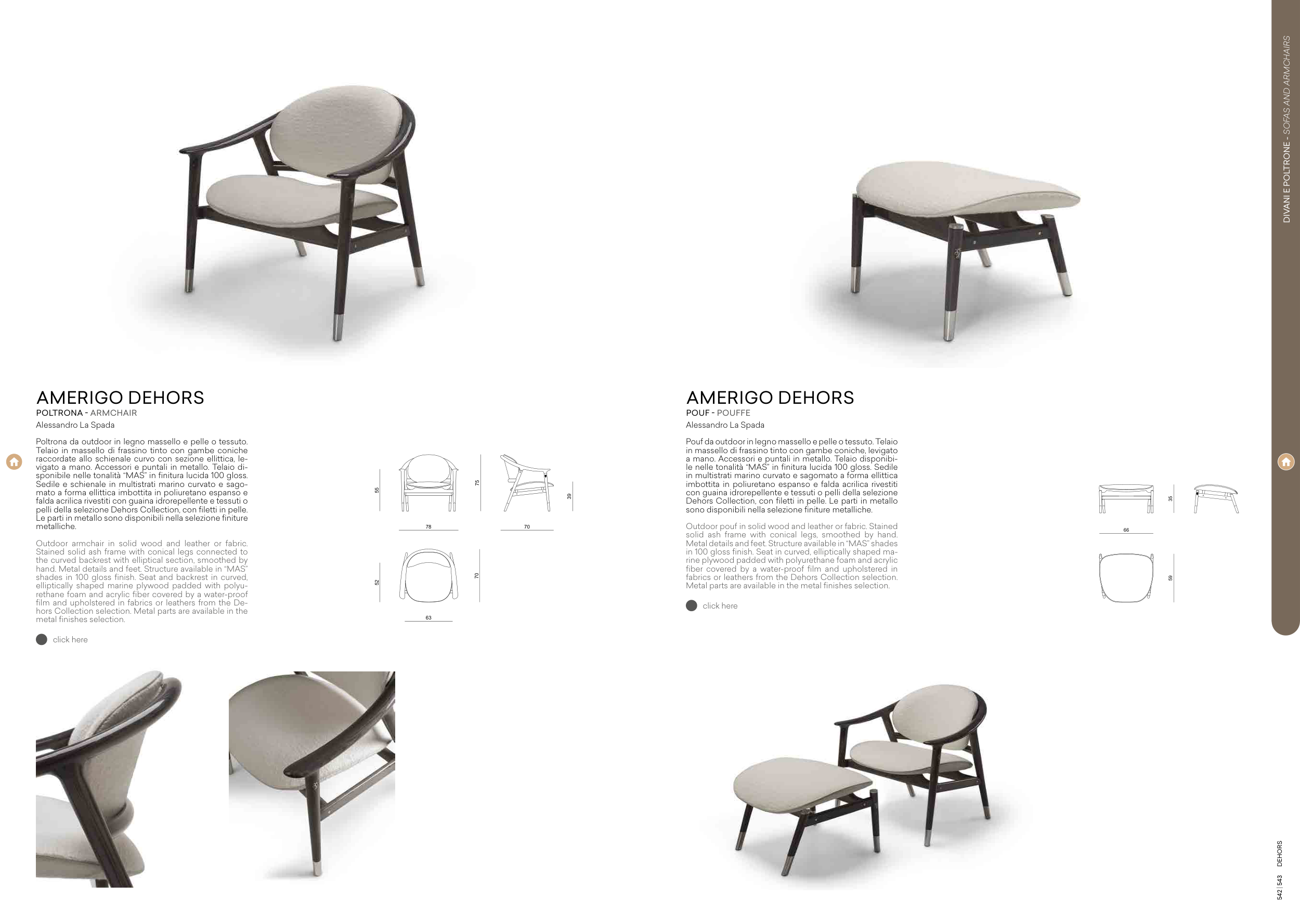 fabrics or leathers from the Dehors Collection selection.