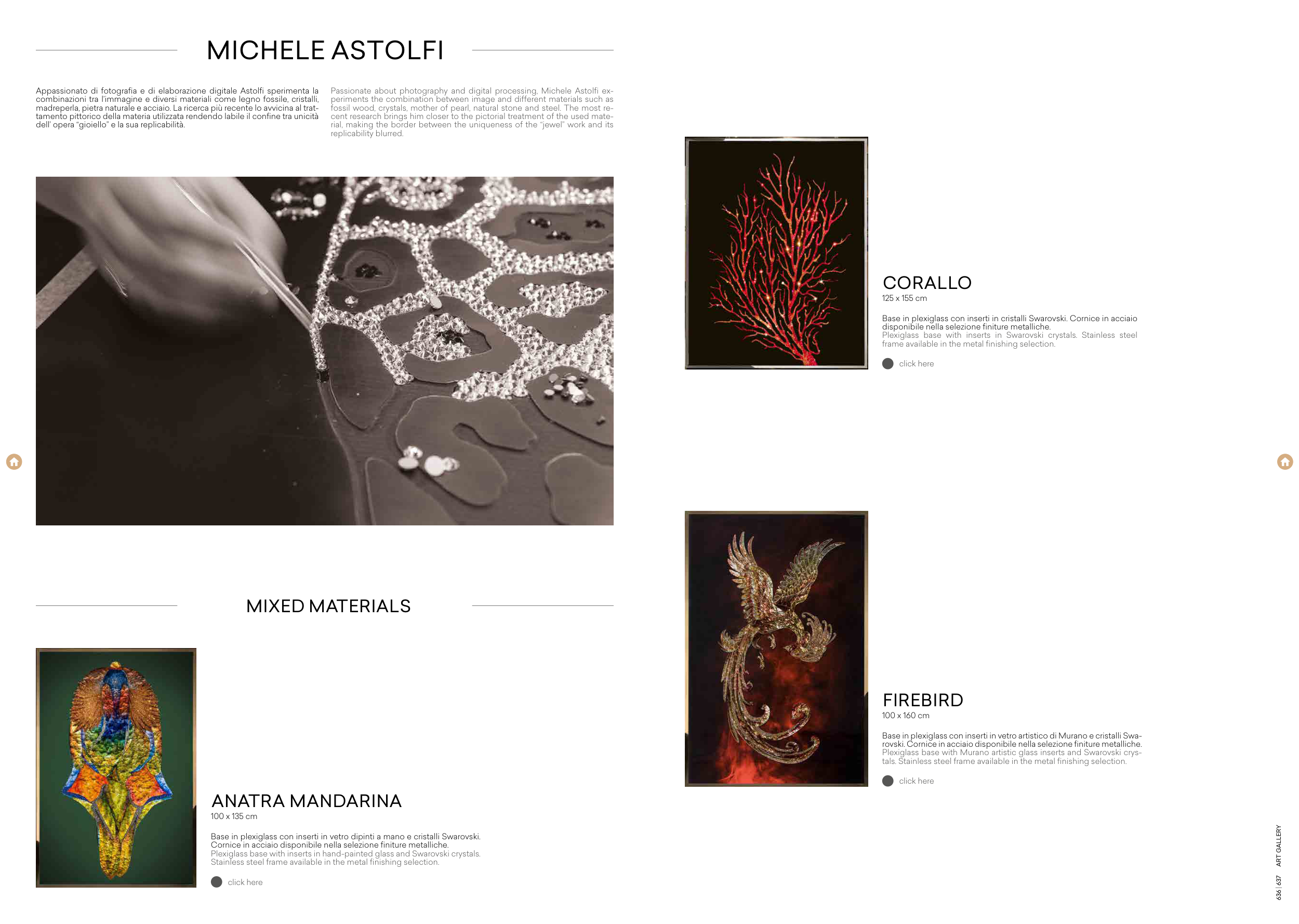 combinazioni tra l’immagine e diversi materiali come legno fossile, cristalli,