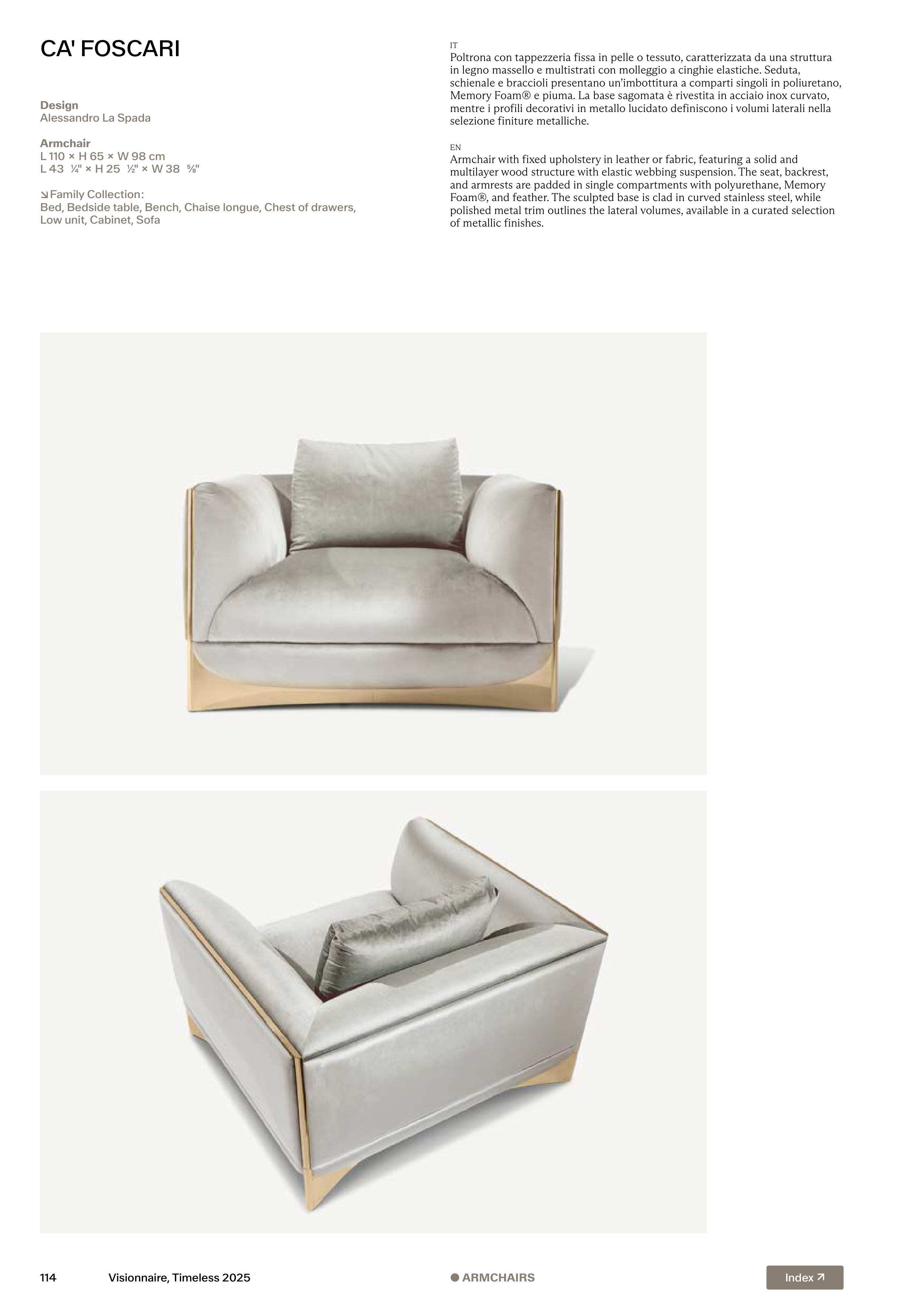 polished metal trim outlines the lateral volumes, available in a curated selection
