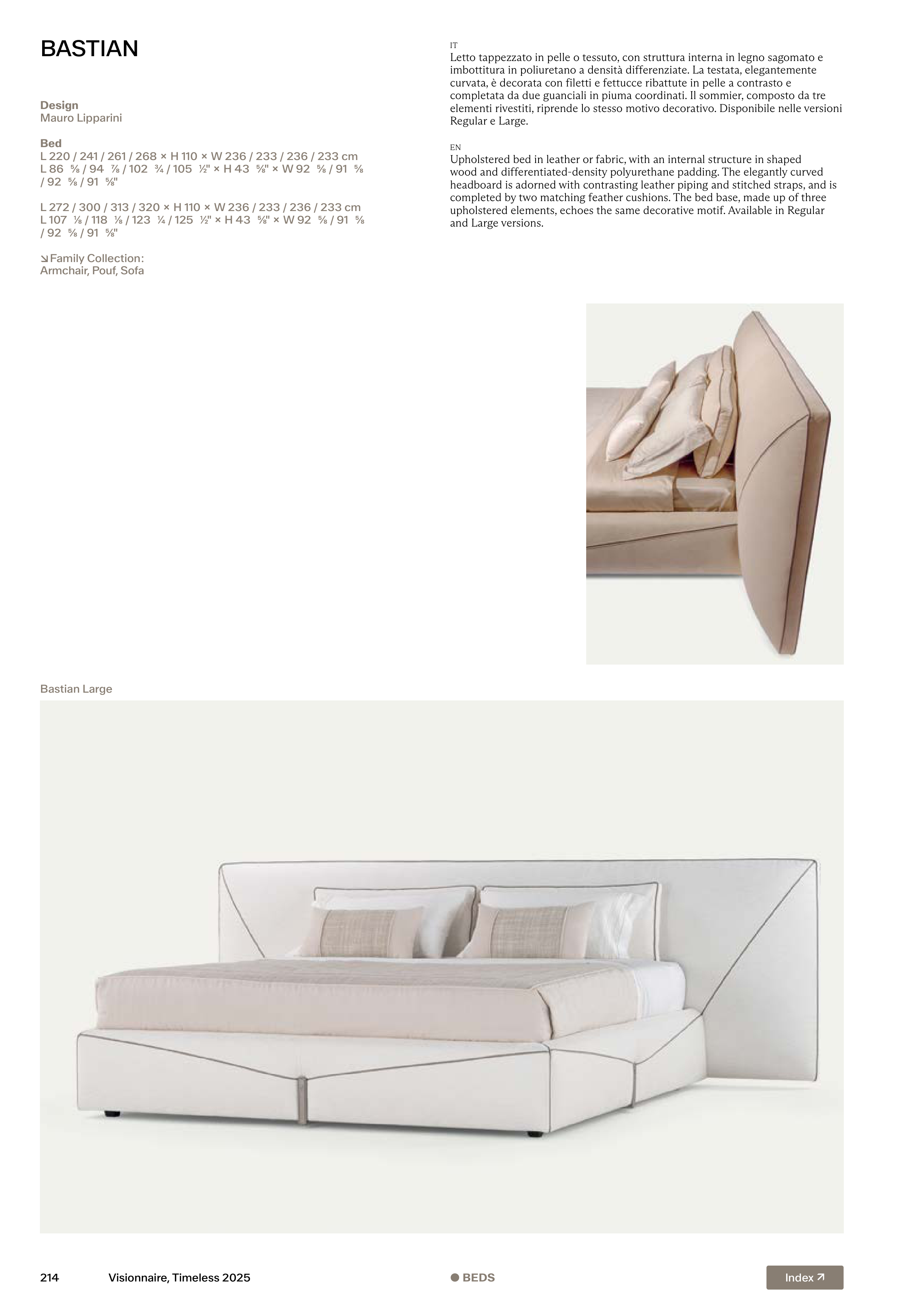 upholstered elements, echoes the same decorative motif. Available in Regular