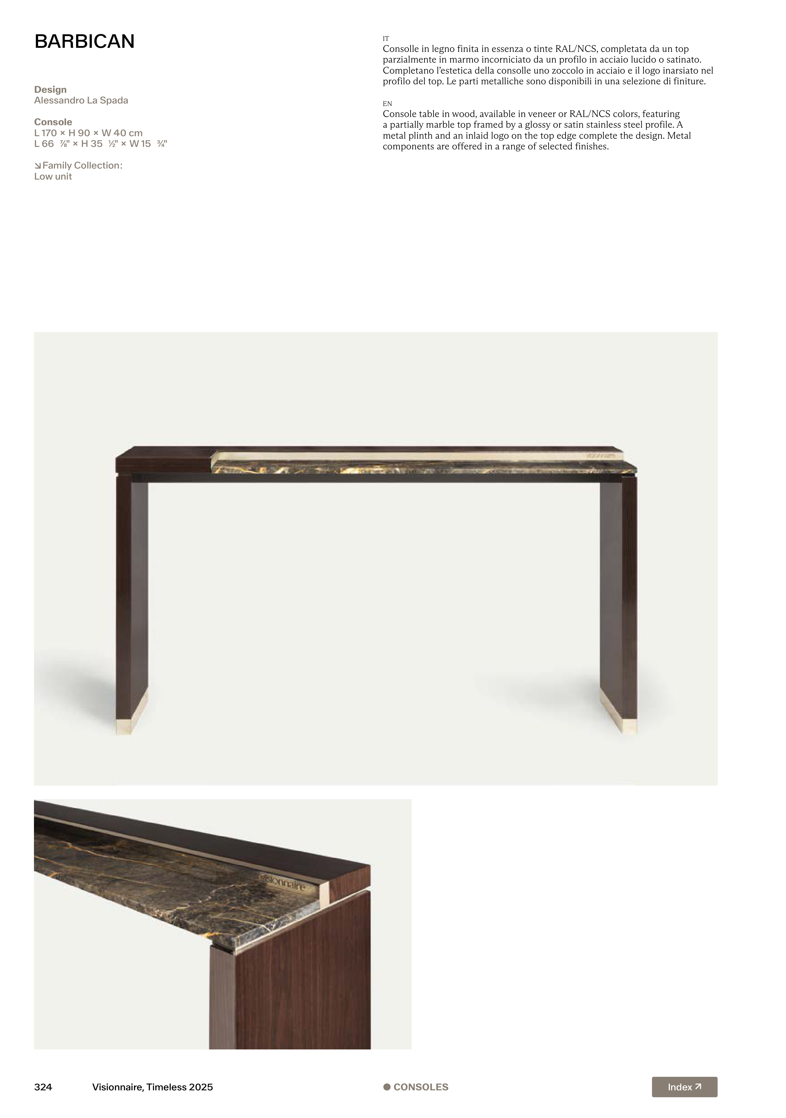 Completano l’estetica della consolle uno zoccolo in acciaio e il logo inarsiato nel