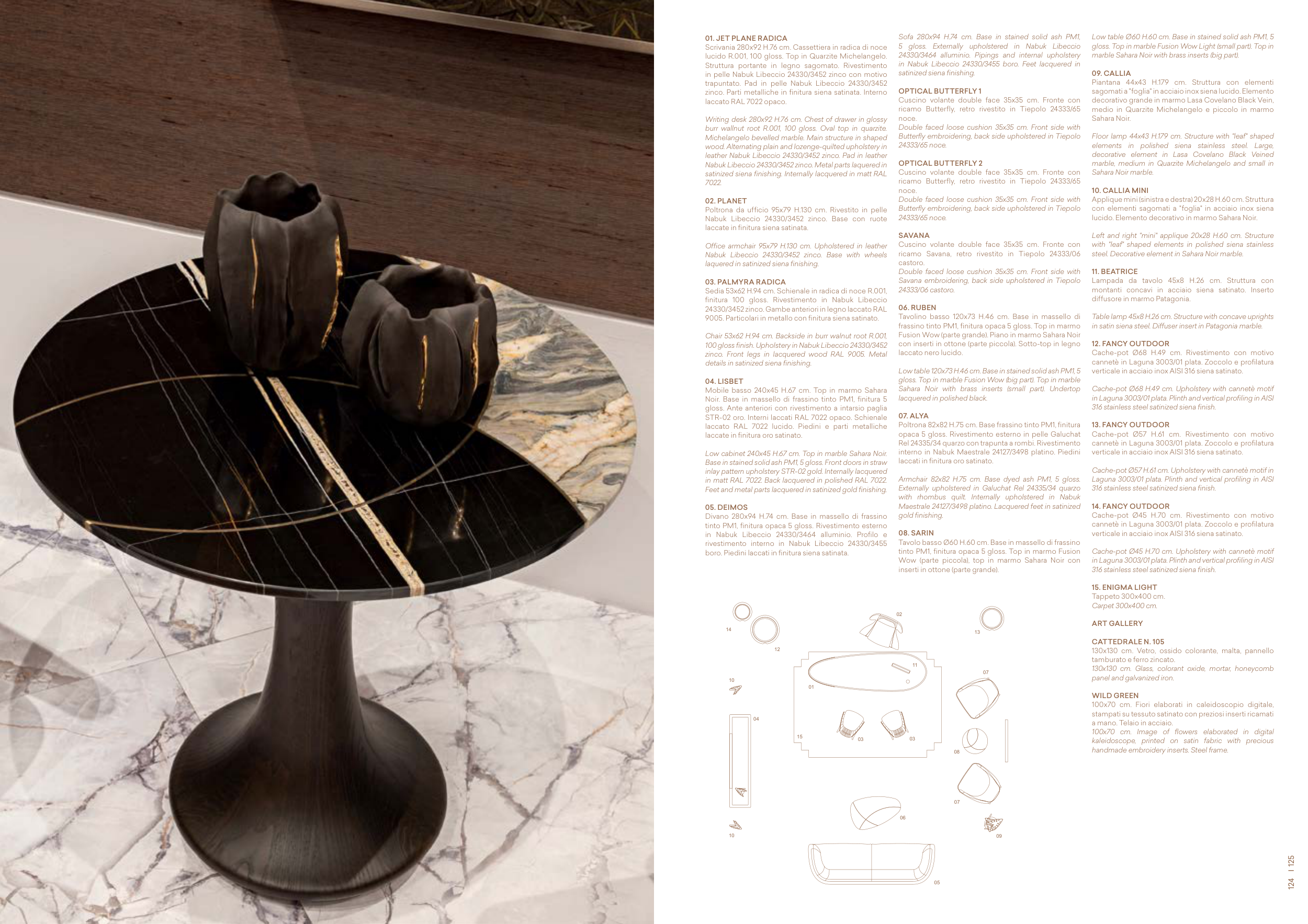 9005. Particolari in metallo con finitura siena satinato.