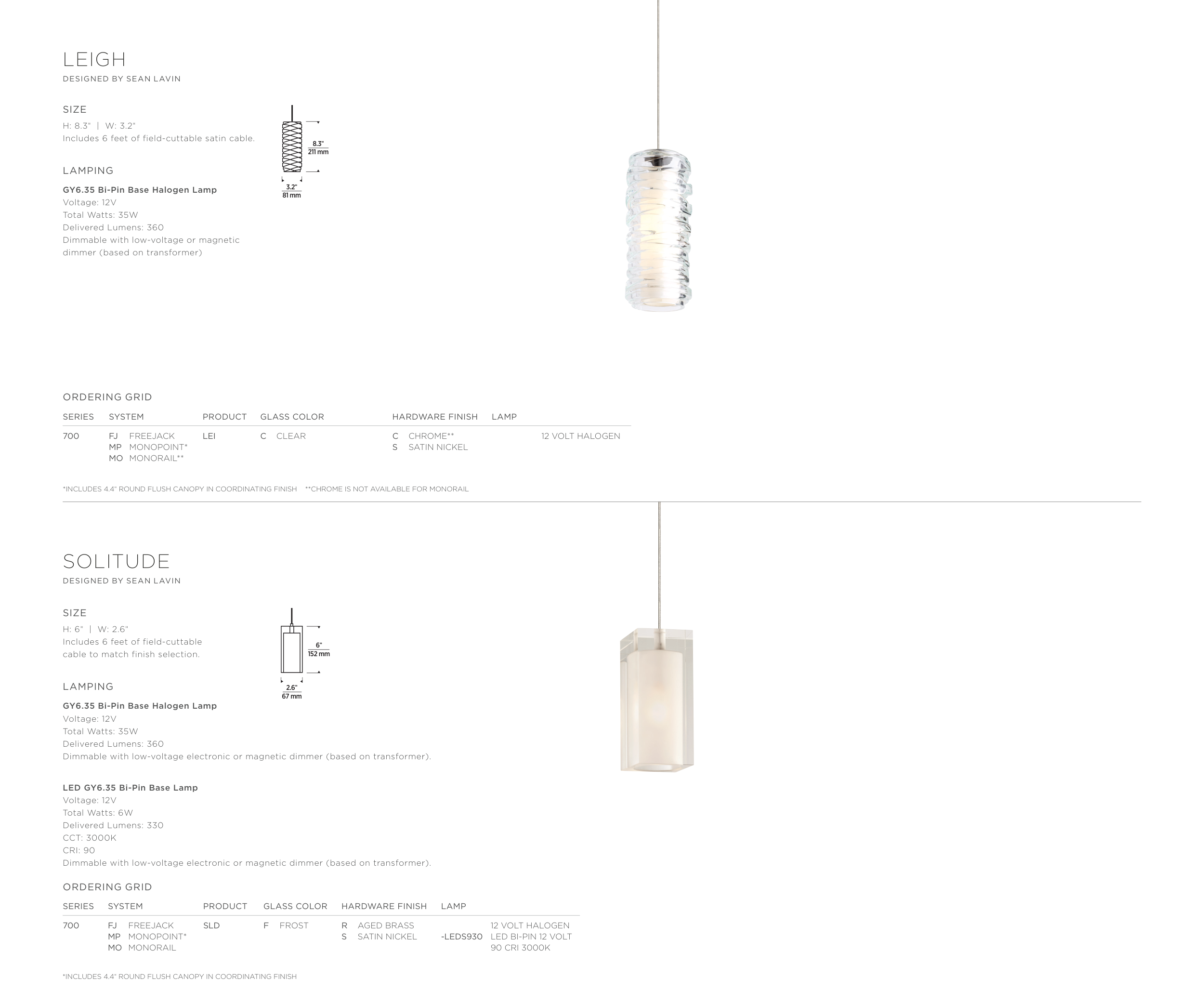 *INCLUDES 4.4" ROUND FLUSH CANOPY IN COORDINATING FINISH **CHROME IS NOT AVAILABLE FOR MONORAIL