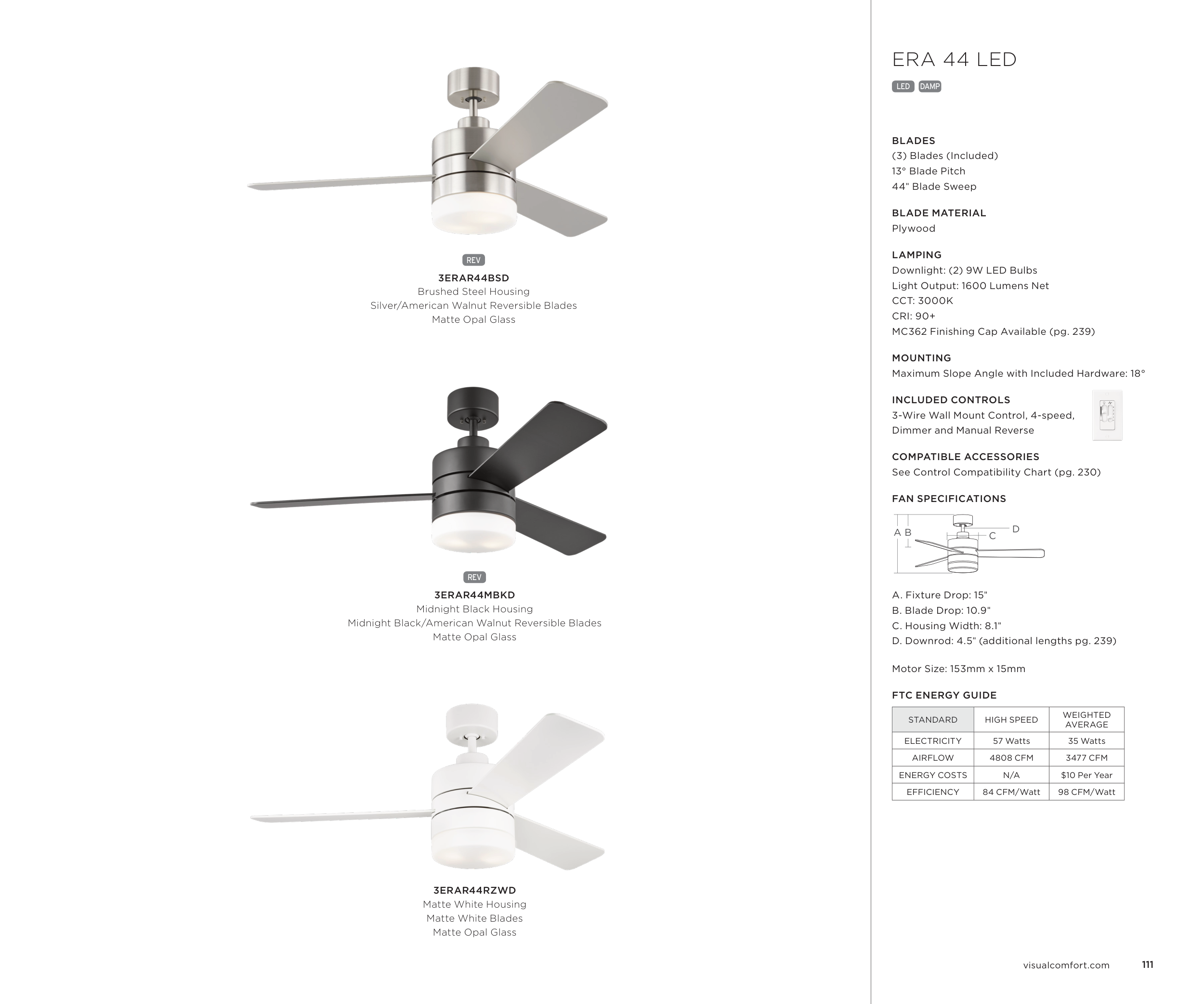 D. Downrod: 4.5" (additional lengths pg. 239)