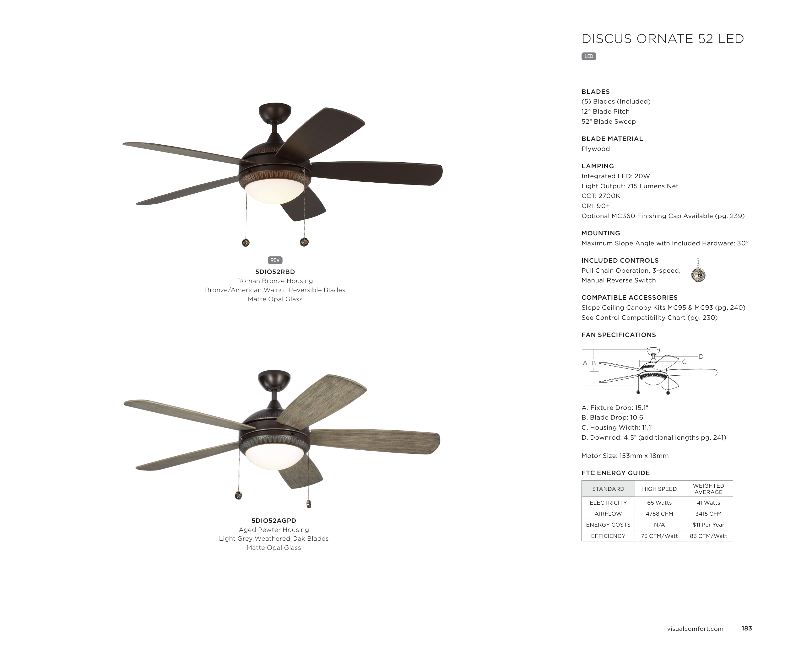 D. Downrod: 4.5" (additional lengths pg. 241)