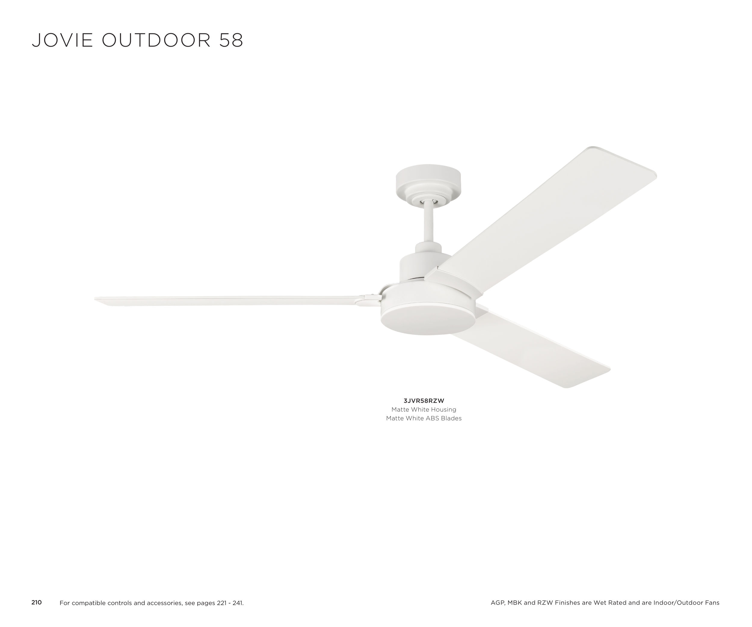 AGP, MBK and RZW Finishes are Wet Rated and are Indoor/Outdoor Fans