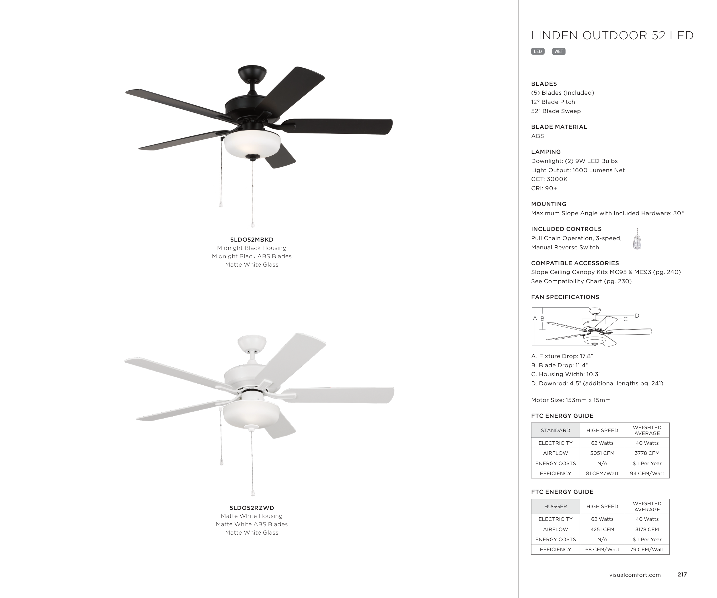 D. Downrod: 4.5" (additional lengths pg. 241)