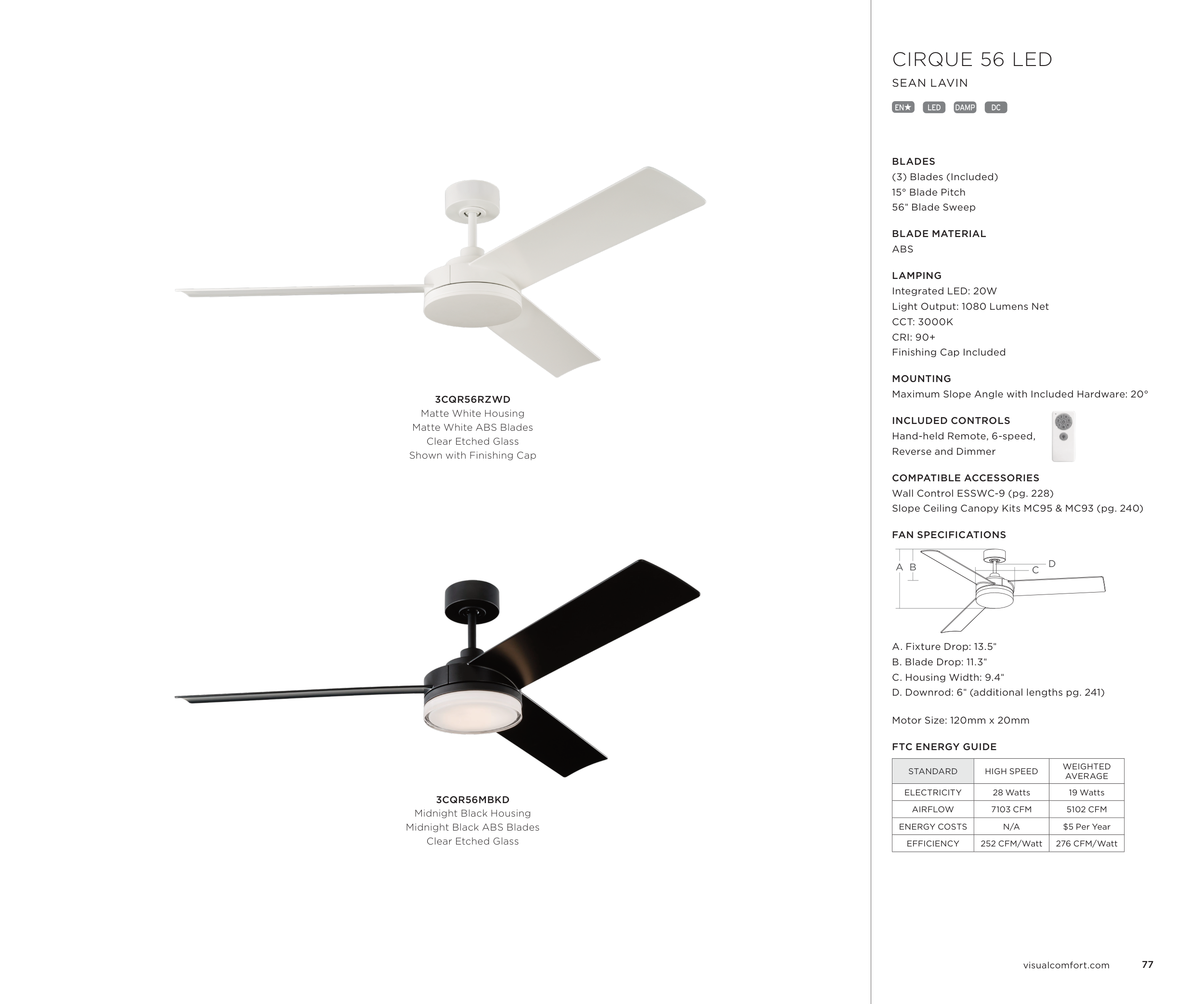 D. Downrod: 6" (additional lengths pg. 241)