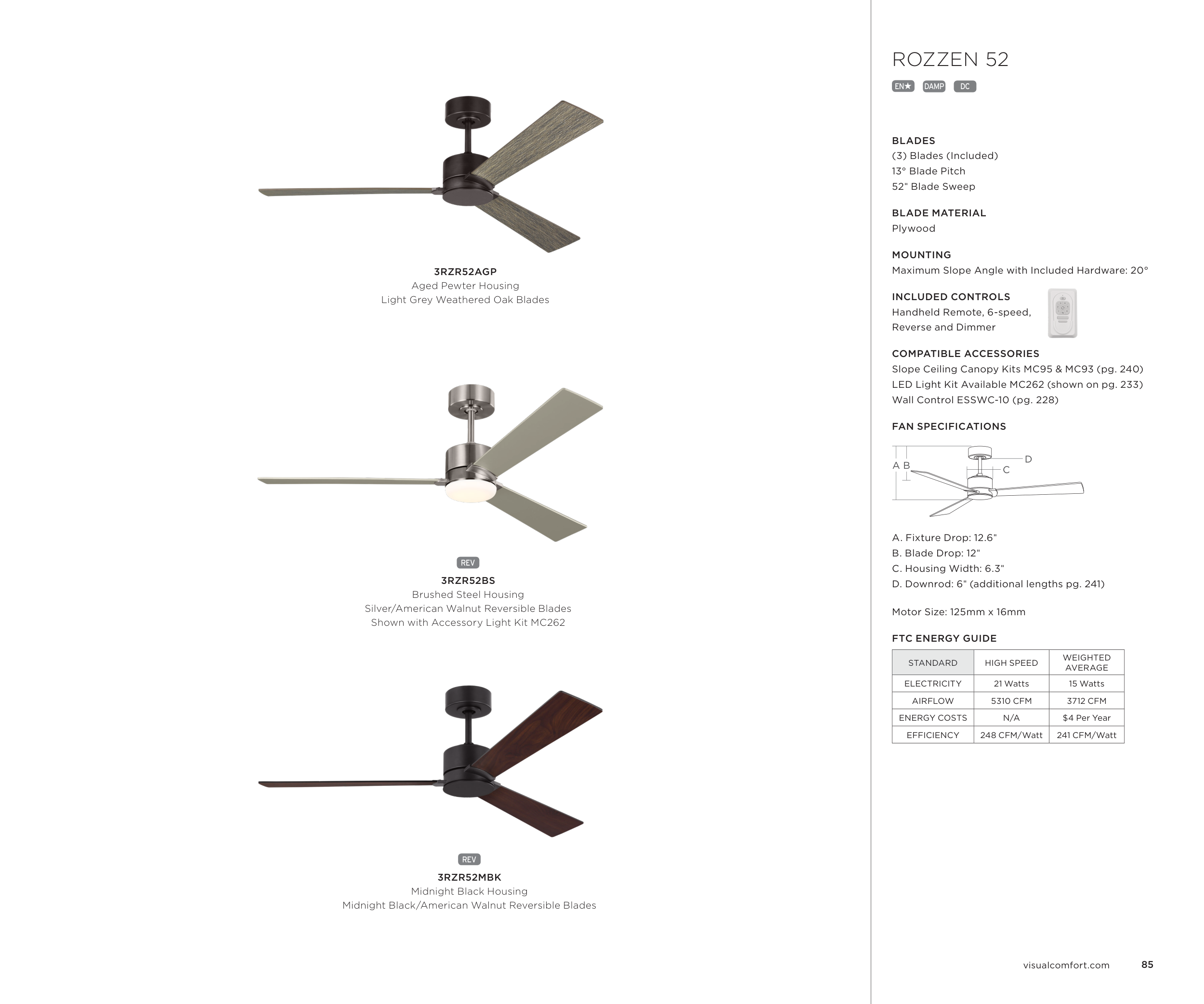 D. Downrod: 6" (additional lengths pg. 241)