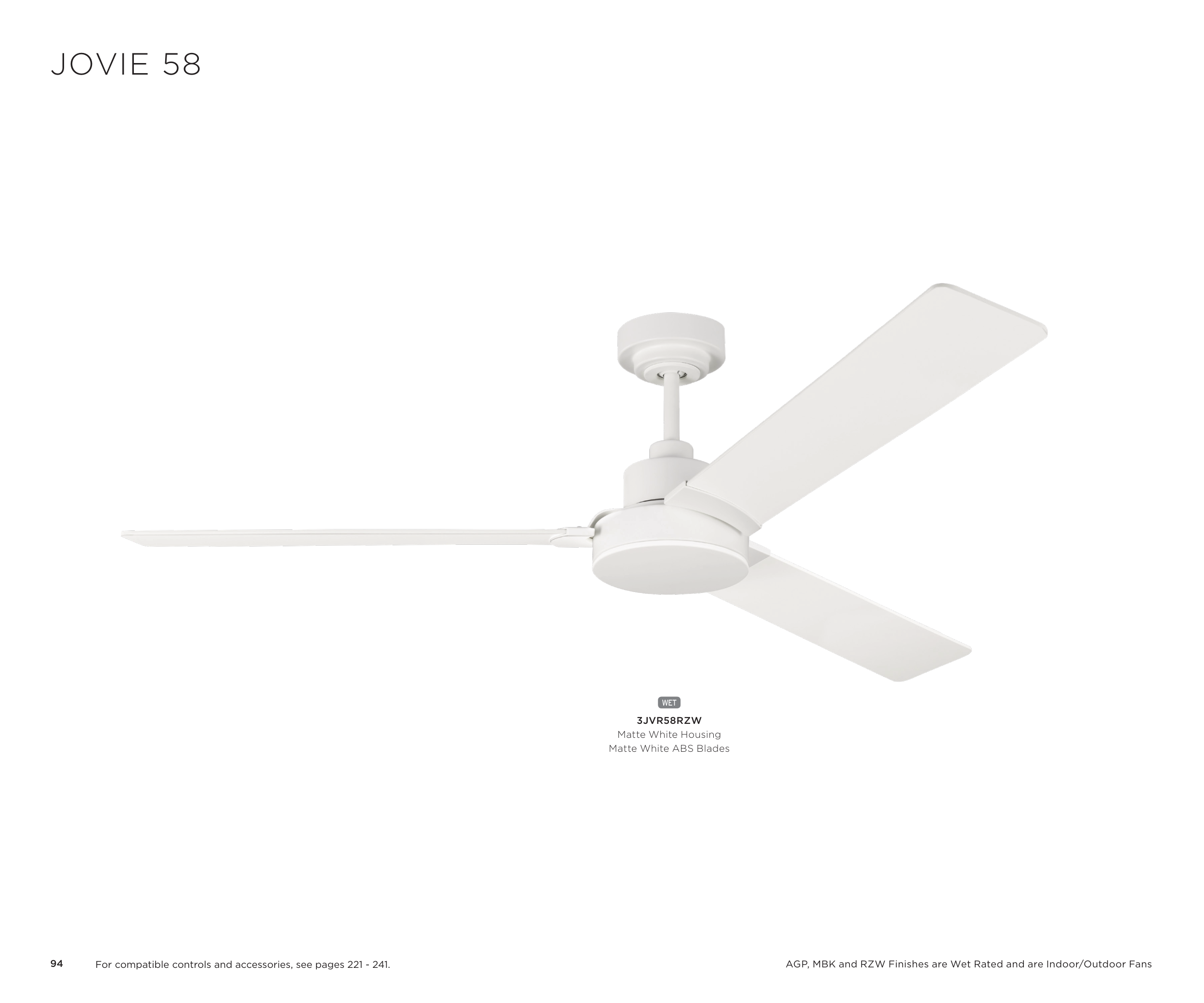 AGP, MBK and RZW Finishes are Wet Rated and are Indoor/Outdoor Fans