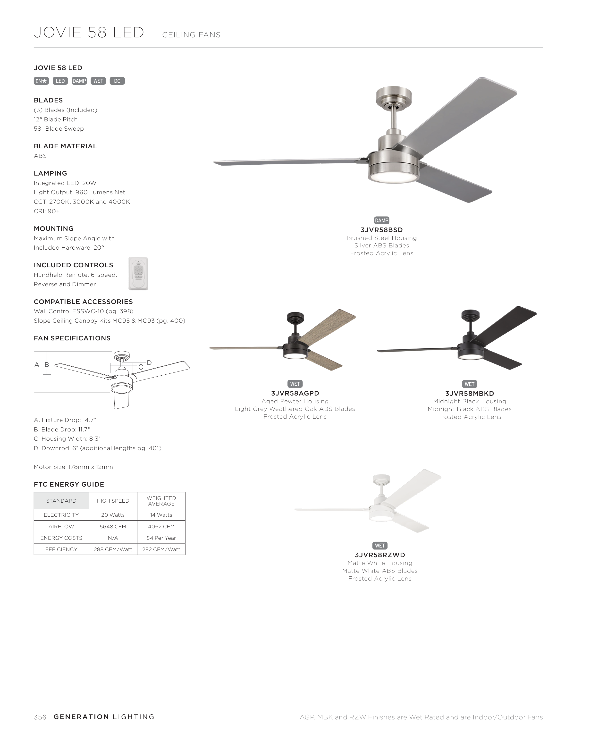 AGP, MBK and RZW Finishes are Wet Rated and are Indoor/Outdoor Fans