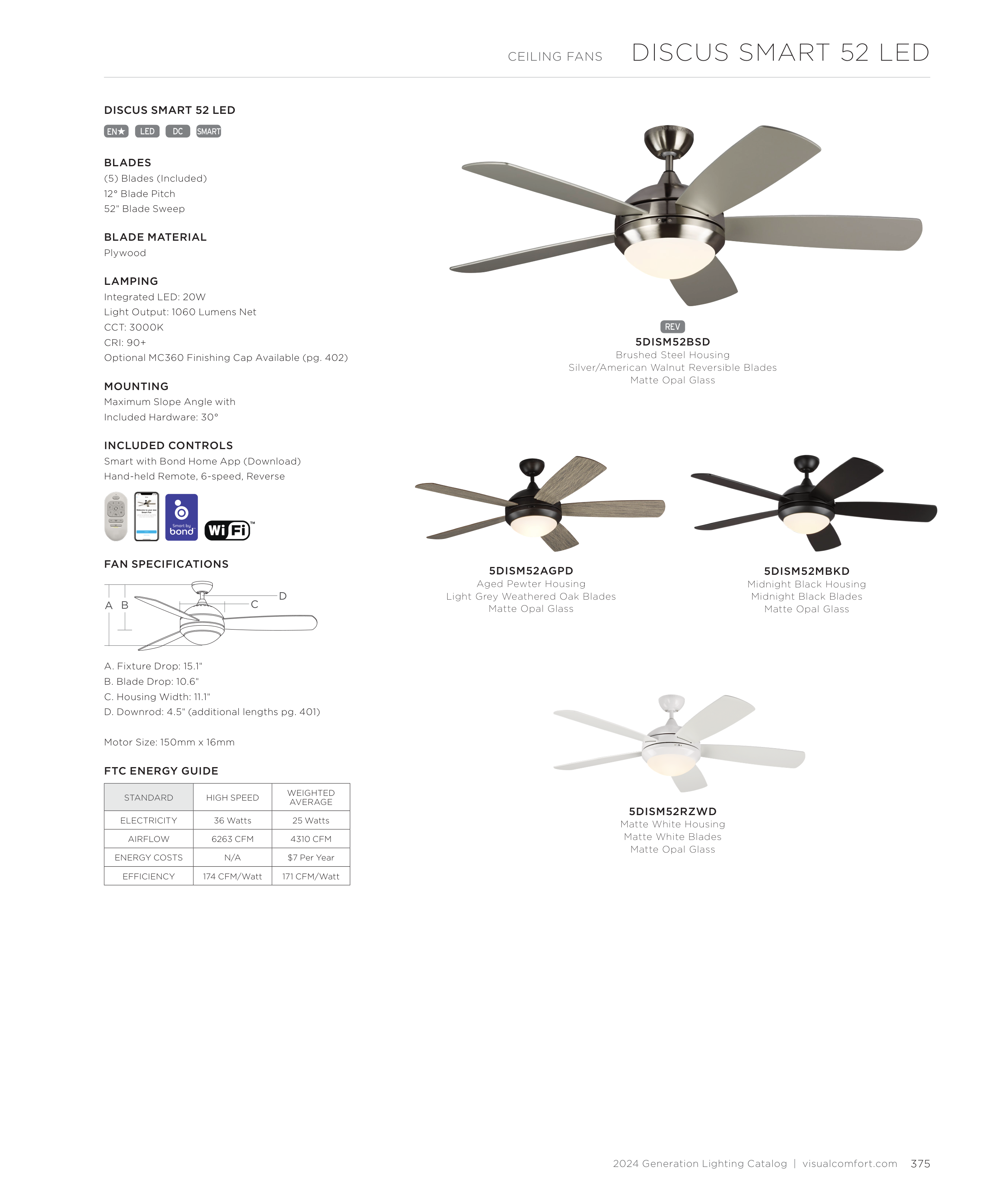 D. Downrod: 4.5" (additional lengths pg. 401)