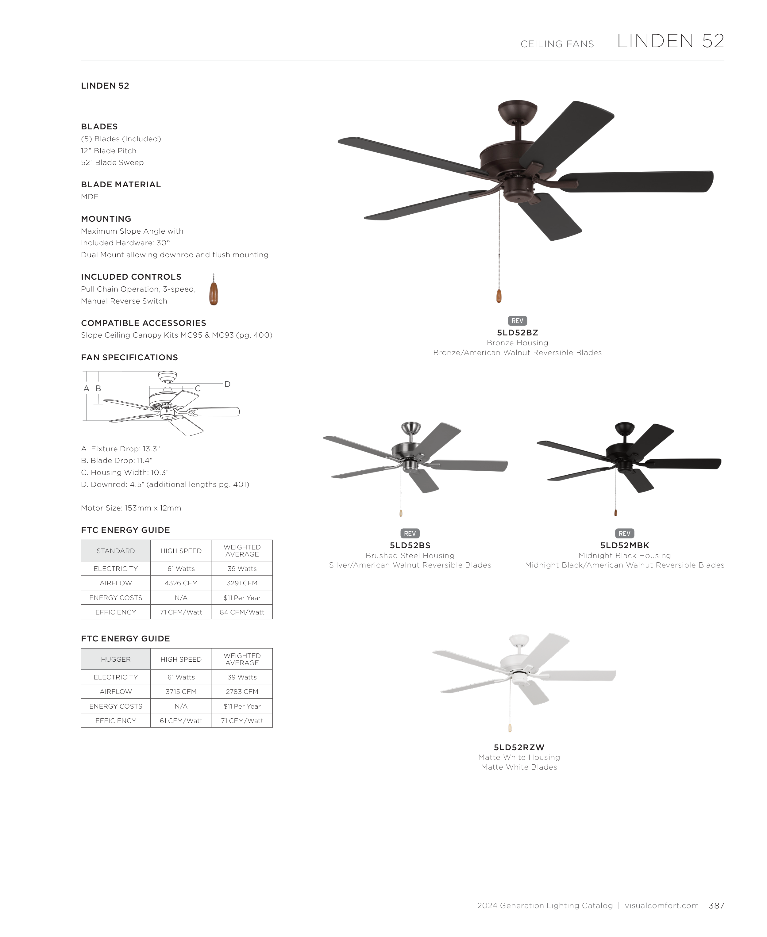D. Downrod: 4.5" (additional lengths pg. 401)